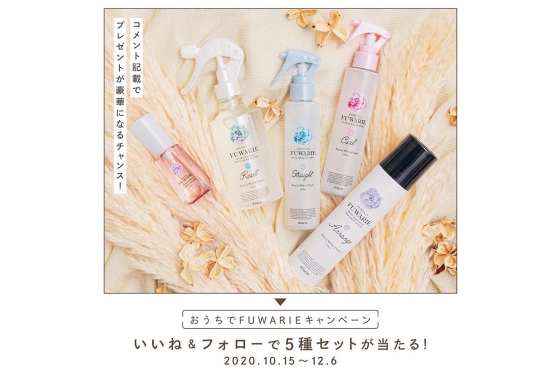 FUWARIE公式Instagramキャンペーン投稿のコメント欄に普段よくする髪型を書いてくれた方は当選確率アップ&プレゼントが豪華になっちゃうかも?!😉