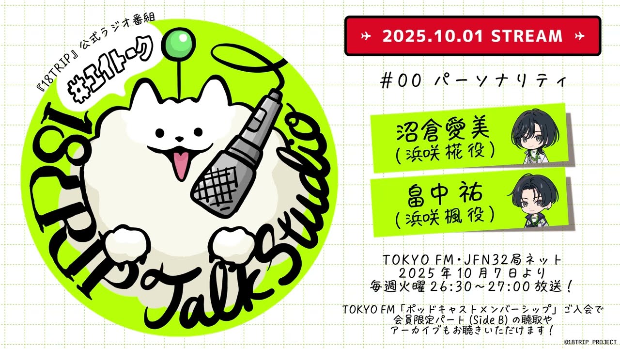 ※音声配信プラットフォーム「ポッドキャストメンバーシップ」、18TRIP公式YouTube「エイトリチャンネル」で配信されるラジオ放送パート(Side A)は、ラジオ本放送から一部内容を編集したものとなります。