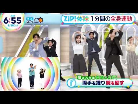 ます。 はい、 では、本田さんとテレビの前の皆さんも一緒に体を動かしましょう。ジップ体操始めるよ。 行きましょう。 はい。行きましょう。 お、 クックラップ。クッションクラッ。クッションクラッ。クッシンクラッ。ウルリンパ。ウルリンパ。 さすがですね。こさん。フルリンパ。はい。セラビ。はい。伸びて。 はい。は。はい。伸びて。はい。 [拍手] 伸びて。い。 はい。次前行きますよ。せーの。 おはよう。 はい。 ございます。 ここ難しいですよ。 回して。 はい。回してプ。 はい。花びステップ。花びステップ。花びステップ。 花びラステップ。はい。 [音楽] はい。 次ちょっと難しいです。はい。 ます。ネジネねジネねジネねじねじねじねじはいンジトンパン。はい。下から はい。ジップスジップ ありがとうございます。 終わりよければ 終わりよければす んさんどうでしたか?ジソ ここだけ完璧でした。 最後の最後 さすがです。 そうなんですよね。あの、番組公式SNS にお手本動画がありますので、ハッシュ タグジップタスをつけてSNSに投稿して