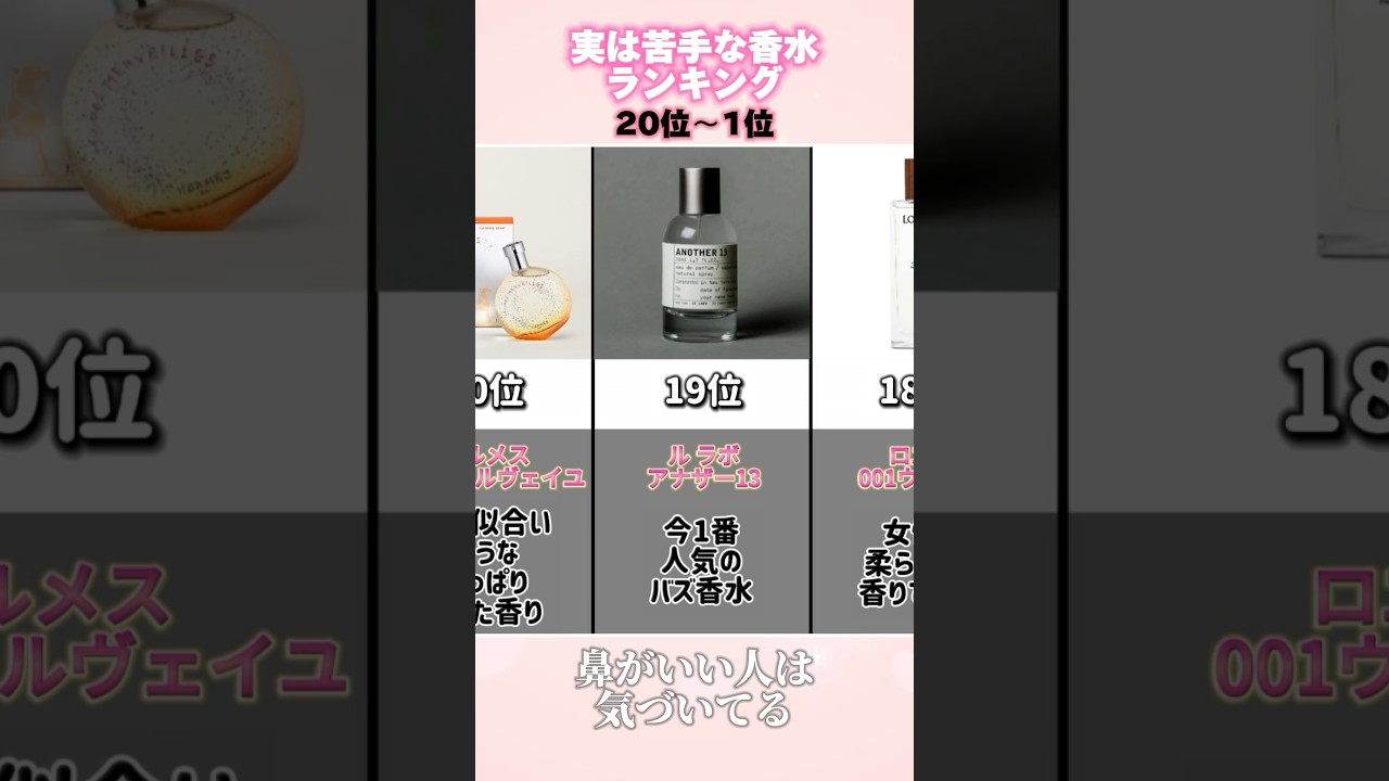 鼻がいい人は気づいてる実は苦手な人が 多い香水ランキングエルメスルラボロエベ など有名なブランドの香水がいきなり ランクインもしかして自分の香水はバニけ じゃないと不安に思ってる人は用チェック ですメンズレディストズ好き嫌いが分かり やすい香水を選んでいます香水は自分が 好きな香りを使えばいいのですがランク インしている香水を使う時はTPOを考え た方がいいかもいよいよベスト10特に ベスト3は納得の人も多いかも個人的に 好きな香水ばりだけど尖ったコンセプトの 香水や強い香りだと好き嫌いが分かれ ちゃうよねシャネルのココマモアゼルは3 美のお母さんの匂いと厳しいレビューも ありましたちなみに私の大好きな香水です 香りに敏感な人はランキングに乗ってい ない苦手な香水を教えてください