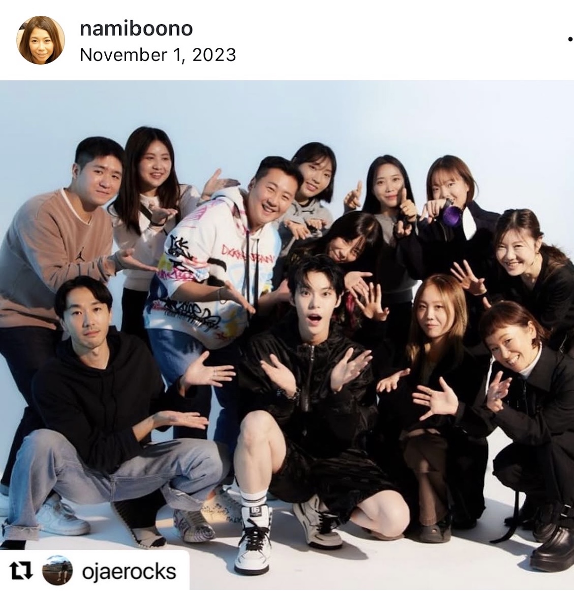 ボーイズグループNCTのドヨンと日本のメディアで撮影した時のスタッフとの記念写真(南さんのインスタグラムから @namiboono)