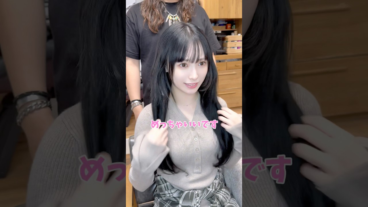 よろしくお願いします。 よろしくお願いします。 今日はトリートメントとエクステ はい はいけちょっと切りますんでね。 じゃ、トリートメントは触りくなるようにやっていきますからね。 お願いします。 はい。じゃあよろしくお願いします。 まずはトリートメントしていきます。前髪カットします。 ほうほう。ここも伸ばしていきたくて 伸ばしてくんだったらここちょっと今角が壊るからこれ取った方がいいんじゃないかなと思うんだよね。こっと柔らかくなるようにちょこっとだけ切ってます。ここ はい。お願いします。 ちょっとだけ めっちゃいい感じです。ていくね。 お願いします。 それではコナちゃんに前髪巻いてもらいます。 はい、お疲れ様でした。 ありがとうございます。 クロスを外します。 めっちゃいいです。 いい感じだと思います。 ありがとうございます。 はい、ありがとうございます。 今回はエクステ長さし 95 本触角カットリートメントしました。是非参考にしてください。 ።