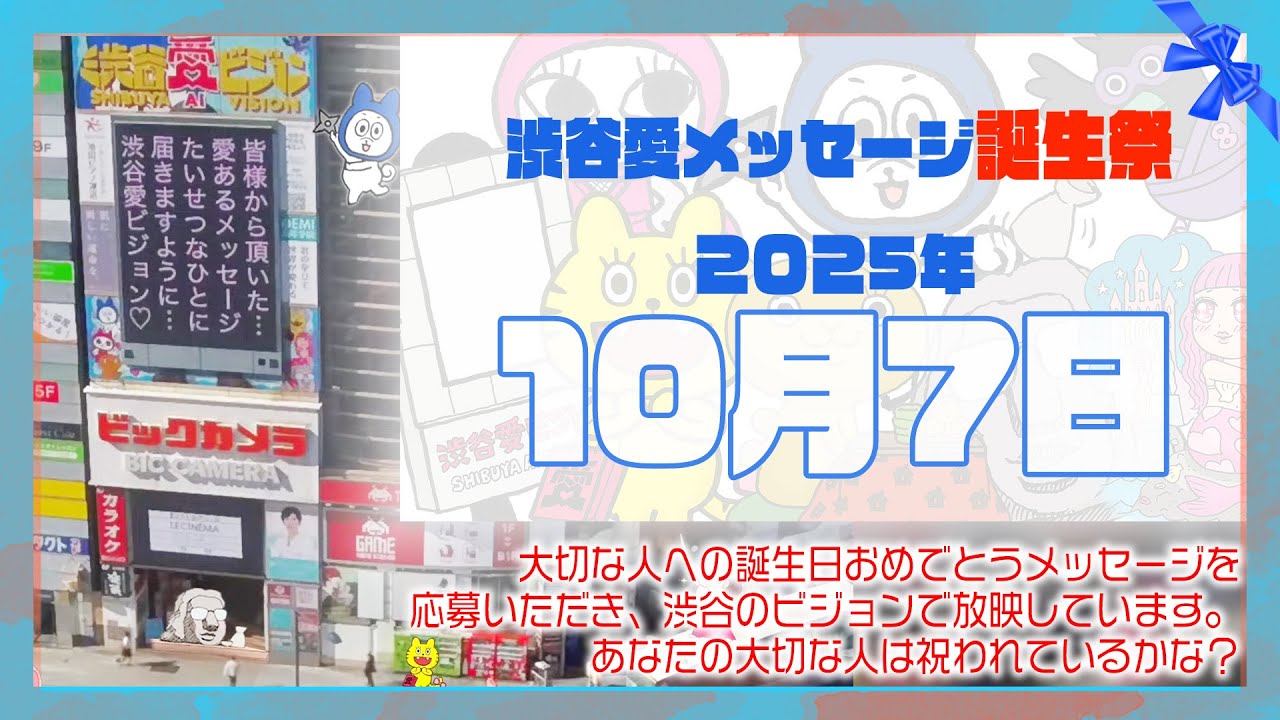 【2025年10月7日】渋谷愛メッセージ誕生祭♡【フル】今日誕生日おめでとう♡大切な人にありがとう♡Happy Birthday♡の配信動画です