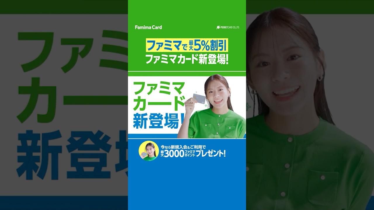 ポケットカード株式会社の発行する「ファミマカード」のCM動画です。年会費無料で、カードご利用代金の請求時にファミリーマートでのお買い物が3%割引、ファミペイ連携で5%割引となるシンプルでおトクなクレジットカード。「ファミマカードでファミマをもっと楽しもう!」をコンセプトのもと永瀬莉子さんがポップな世界観で表現します。https://fcard.pocketcard.co.jp/ #永瀬莉子