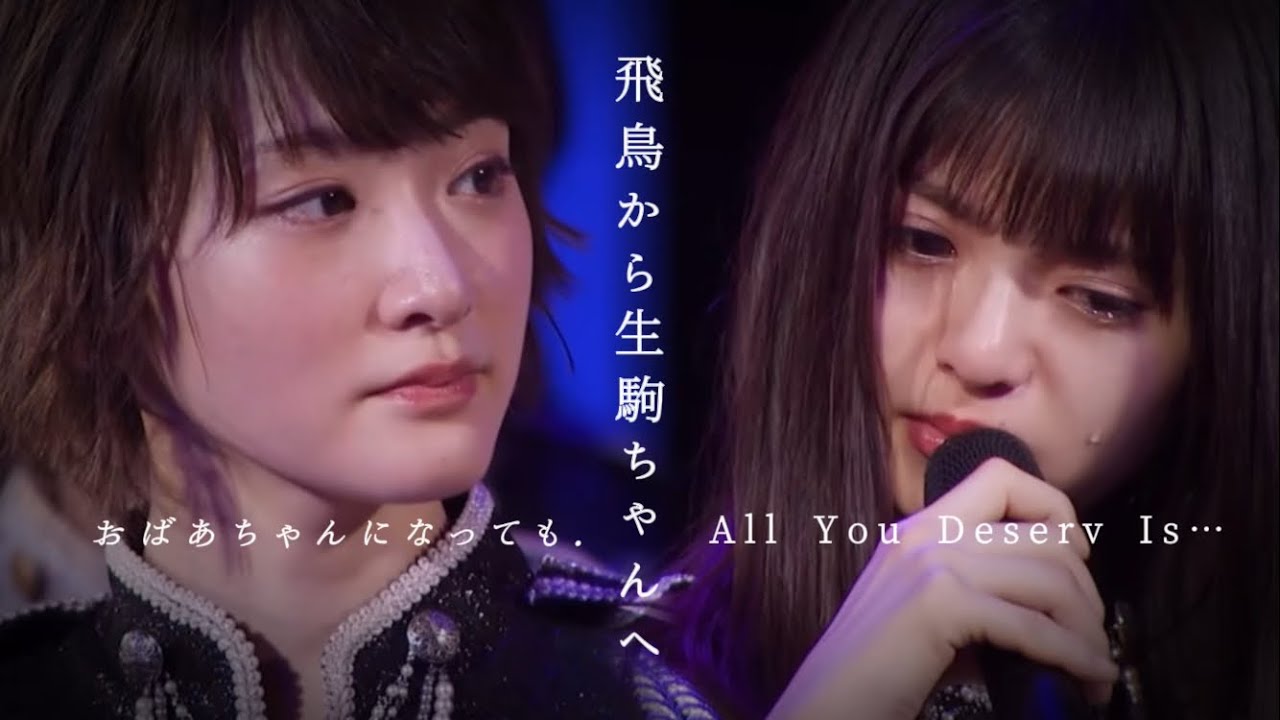 いこまちゃんが卒業決めた時に [音楽] 1 番最初に私が思ったのはなんかこういくまちゃんが結構乃木坂でいろんな経験をさせてもらっていろんなことを知れたっていう話をしてたからこうすごく前向 [音楽] 卒業だっていうのはもちろん分かってるんだけど、それでもこもちゃんが残りたいって、まだ乃木坂として活動したいって思えるグループでいられなかったことが [音楽] 頑張ってるから それがちょっと 悲しいなとか 悔しいなってちょっと思っちゃってたん ですけど でも最近のいこまちゃんの 活動というか卒業に向けていろんなことに 取り組んでるいこまちゃんを見て やっぱそういう風に思うのはいこまちゃん に対してもきっと失礼だろうし、 いこまちゃんが卒業した後の ここにいるみんなでこんなに誇ろしい メンバーがいるんだから ちゃんといこまちゃんが前にみんなに言っ てくれた 紅白出てるとこ見たいよとかそういう夢を 叶えていけたらいいなっ ってすごく思ってます。的にはあのごまちゃんはすごく可愛らしいおばあちゃんになると思うから本当にさっきもかずも言ったけど本当に長気してほしい。多分あと [音楽] 50年ぐらいはいと思うから大丈夫だよ。 それを楽しみにしてます。 うん。 おばあちゃんになったらまた明日のとこ行くわ。 また青おばあちゃんになったら。 うん。ありがとうございます。