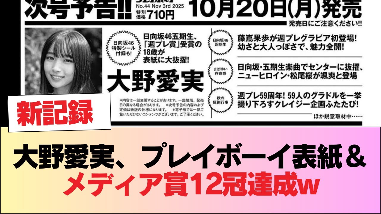 大野愛実、プレイボーイ表紙で過去最多のメディア賞12個目獲得w #日向坂46 #日向坂 #日向坂で会いましょう #乃木坂46 #櫻坂46
