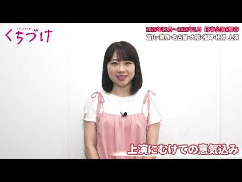 [音楽] 皆さん、こんにちは。アのまこちゃんを 演じさせていただきます石田ゆみです。 [音楽] え、今回私はタクフェス初参加でこの歴史 のある口付けという作品に、まこちゃん役 で参加させていただくこと、え、とても ドキドキしているんですけれども、え、 そういう現場である方があの、石田という 人間は燃えますので、しっかりと皆さんに ついていけるよう石 は、え、小時から、あの、母が家でパンを 焼いてくれるんですね。母の趣味が パン作りなんですけど。なのでその母の パンを食べて育ちました。あの、 クリスマスとかにサンタクロースの顔の パン、しかもその本当私の顔ぐらいの サイズのサンタクロースの顔の形のパンと クリスマスツリーのパンをこう作ってくれ たんです。サンタクロースの顔のパンは あの髭とかは黒くするためにチョコレート 味にしてくれてたんですけどなのであの その髭の部分を食べたかったです。顔は あの味がなかったのであの味なんですけど 髭をお兄ちゃんと取り合ってたなとかそう いうパンと共にしてきた思い出があります 。 え、タクフェス第13弾口付け。 え、愛情を込めて舞台に立ちますので、是非気をつけて楽しみに劇場に足を運びください。お待ちしております。神様ありがとう。 [拍手] 見えろ 思い口け とにアイラブ あ。