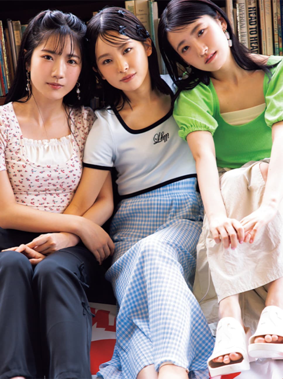 【小田倉さん】花柄トップス¥4950/アダストリア(Heather) サテンパンツ¥9900/merry jenny パールピアス¥2090/GOLDY サンダル¥7990/ロコンド(MANGO) インナー/スタイリスト私物 【遠藤さん】Tシャツ¥6380/lilLilly TOKYO(lilLilly) チェックスカート¥9900/The Girls Society リボンピン(4個セット)各¥550/パリスキッズ原宿店 サンダル¥7920/REZOY 【石森さん】パフスリーブトップス¥4290/アンティローザ(SHAGGIE) シャーリングスカート¥8900/jóuetie⦆ルミネエスト新宿店 クリアイヤリング¥4400/ROSE BUD⦆ルミネエスト新宿店(MABEL) サンダル¥24200/DIESEL JAPAN(DIESEL) 中に着ているベア/スタイリスト私物 ●商品情報はViVi2023年8月号のものです。