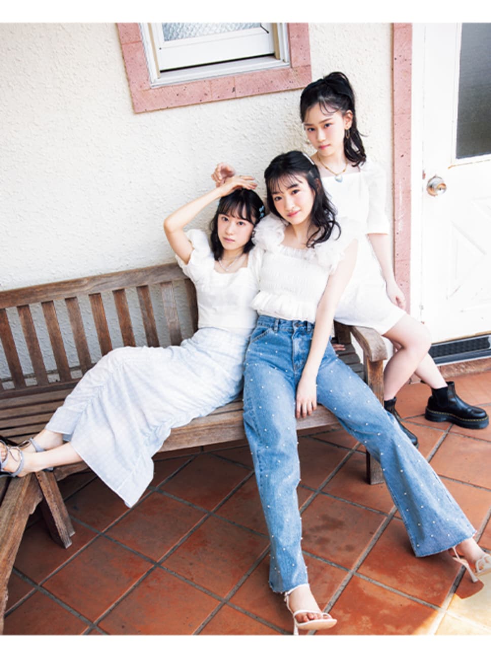 【村井さん】パフスリーブブラウス¥13970/SNIDEL ギャザースカート¥9460/バロックジャパンリミテッド(MOUSSY) リボンピン(4個セット)¥550/パリスキッズ原宿店 シルバーネックレス¥6050(ラピュイ)、クリアネックレス¥4400(キャセリーニ)/キャセリーニ リング¥659/WEGO サンダル¥65780/SHOWROOM CHRMR(YIE YIE) 【小島さん】チュールトップス¥12000/Bibiy. デニム¥26500/The Girls Society ビジューピン(4本セット)¥659/W♥C イヤリング¥2950/サンポークリエイト(アネモネ) ビジューリング¥2420/キャセリーニ サンダル¥7500/CHARLES & KEITH JAPAN(CHARLES & KEITH) 【山下さん】ワンピース¥41800/Verybrain リボンバレッタ¥15400/THE HAIR BAR TOKYO(シルクフィロソフィー) ピアス¥550/パリスキッズ原宿店 ハートネックレス¥4950/X-girl store(X-girl) リング(4個セット)¥2310/サンポークリエイト(アネモネ) ブーツ¥36300/ドクターマーチン・エアウエア ジャパン(Dr.Martens) ●商品情報はViVi2023年8月号のものです。