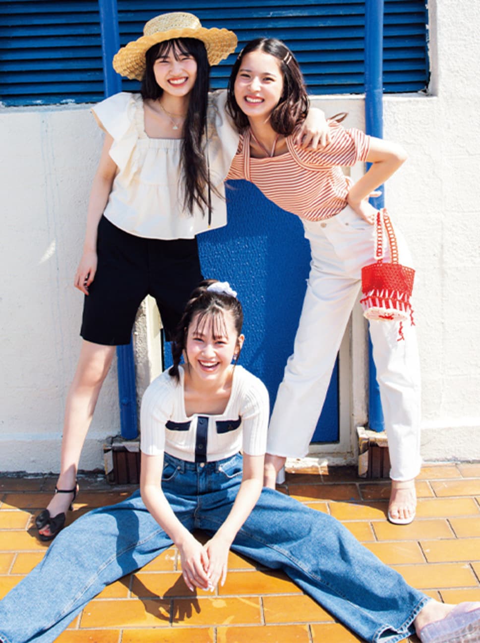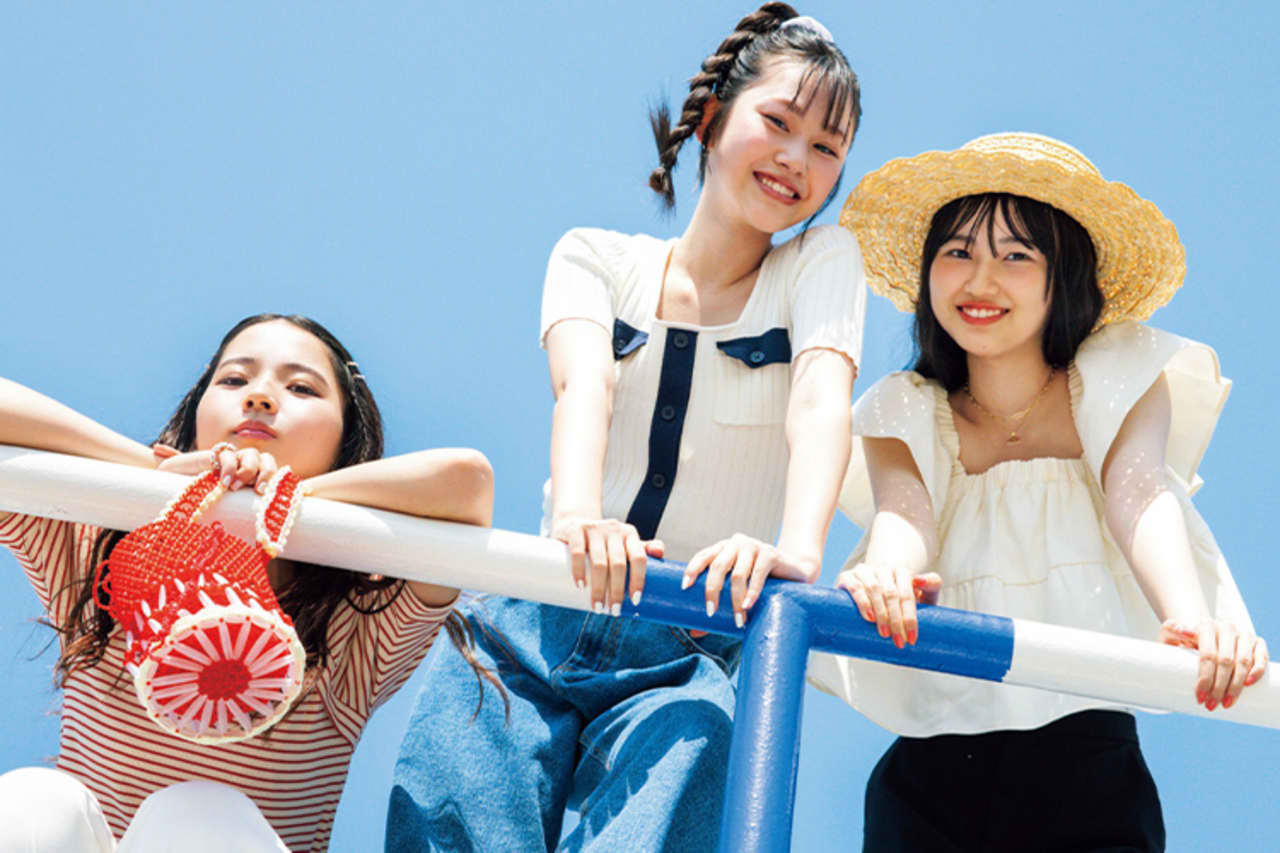 【的野さん】ブラウス¥28600/Verybrain ハーフパンツ¥8800/バロックジャパンリミテッド(MOUSSY) ハット¥5500/キャセリーニ チェーンネックレス¥550/パリスキッズ原宿店 ロゴネックレス¥13200/89xiiitokyo サンダル¥60500/SHOWROOM CHRMR(YIE YIE) 【中嶋さん】パフスリーブトップス¥3960/w closet デニム¥5390/プレポワ(oneway) ヘアピン(4本セット)¥660/パリスキッズ原宿店 ビジューリング¥2420、ビーズバッグ¥14300/キャセリーニ ミュール¥10500/CHARLES & KEITH JAPAN(CHARLES & KEITH) 【向井さん】リブトップス¥5995、ビーチサンダル¥6490/バロックジャパンリミテッド(MOUSSY) デニム¥6600/WEGO シュシュ¥1650/ロサンゼルス アパレルジャパン(ロサンゼルス アパレル) イヤリング¥2200/サンポークリエイト(アネモネ) ●商品情報はViVi2023年8月号のものです。