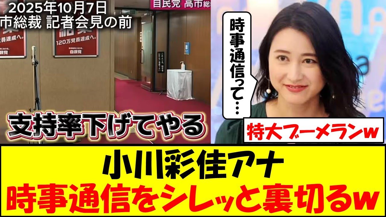 小川彩佳穴が事事通信を裏切りました。 高一総裁を待っている間、指示率下げて やるなどの発言をし、大炎上した知事通信 のカメラマン。この騒動について小川彩穴 がTBSKニュース23で衝撃発言をした ことを日韓スポーツが報じました。 フリーアナウンサー小川彩佳は9日 キャスターを務めるTBSKニュース23 に生出演。自民党本部で7日、高一総裁の 取材のため待機していたメディア関係者が 指示率下げてやるなどと発言していた問題 で当事者が明らかになったことについて 厳しい区調でコメントした。この問題を 巡り事通信者は9日同社映像センター部 所属の男性カメラマンの発言だと確認した ことを公表。同社のニュースサイトで報じ た他本人を厳重注意したことも発表。 報道の構成性、中立性に疑念を抱かせる結果を招えたとしている。番組ではこのニュースを短く伝え小川はこういうこと 1 つでメディアへの信頼が損われてしまうということ残念なことだと思いますと語った。 これを受けSNS では自分たちも同じようなことをしてきたくせにあたかも自分だけはいつも高成な報道をしているかのような態度が腹立たしい。 今までやってきたと疑われる事案が多 すぎる上に今回の件でそれが確定したわけ ですからね。これだけで終わらそうとして も終わらないのは当然ですね。こういう こと1つたったけみたいなものいいだが メディアは今までこれ以上に取るにない ことで一体どれだけの人の足を引っ張った んだか。TBS のニュース言稿を読んでてヘドが出ませんか? TBS が常日頃から行ってた星層に対する嫌がらせの根底がたまたま 露呈しただけだと思いますよ。小川穴は他者批判より身近に批判すべき対象があると思います。 報道特集という変更番組作り続けていてそんなことも分からないのか。それに安倍総理が出演した際にお前睨みつけていなかったか などの声が上がっています。 小川穴は人のように発言されましたが、 TBSもメディアの信頼を損うようなこと をしていますよね。特に変更報道特集は 兵庫県の文書問題、参院戦中の賛成党への ネガキャンや外国人問題。最もひどかった のはTBSのオ務事件。あれほどの問題を 起こしておいて未だに変更報道を続けて いるのはなぜでしょうか?他局のことを 言える立場ではないということをお忘れ なく。あなたはこの件についてどう思い ましたか?コメント欄で感想を教えて いただければ幸いです。それでは今回は この辺で最後までご覧いただきありがとう ございました。よろしければチャンネル 登録、高評価よろしくお願いします。
