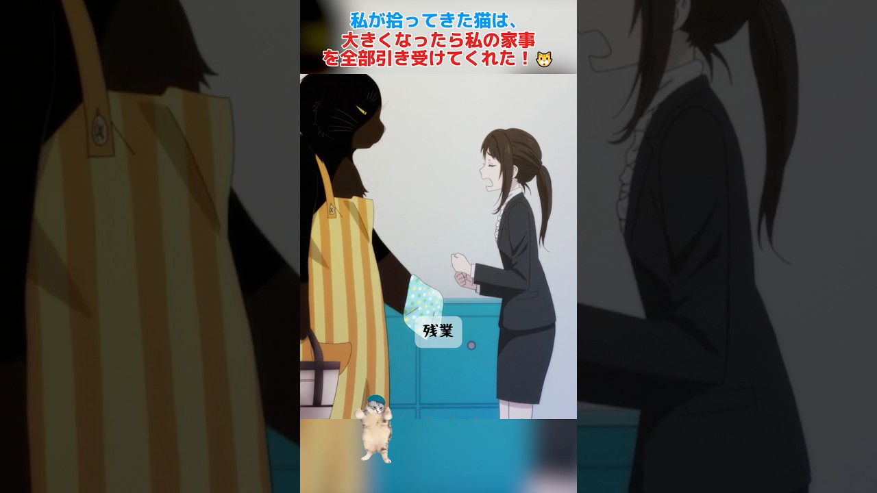 この少女は雪の中で野良猫を拾いました。 しかし彼女が思いもしなかったのは半年後 。この猫がなんと1m80cmまで大きく なってしまったことです。それだけでなく この猫は少女の部屋と浴室の掃除まで 手伝ってくれます。毎朝猫は少女のために 合成な朝ご飯と弁当を作っています。もし 少女が布団から出ないで起きない場合は猫 は優しいおしサービスも提供してくれます 。会社グやらよ。 働きたくないよ。今日も絶対残産残業確定だよ。ああ、満員車だよ。酔っ払いも乗ってくるし。本当もうやめない。ああ、ゆきじ、私の味方はお前だ。 [音楽] え、 猫は毎日テレビで新しい料理の作り方を勉強しています。天気が良ければ猫は布団と一緒に日差しを浴びることもあります。毎日午後 [音楽] 5 時半には猫は必ず時間通りに少女の夕飯を作ります。 ゆき聞こえる?ちょっと仕事でトラブルがあって泊まりになりそうだからご飯いらない。ごめん。 まあたまに主人が時間通りに帰ってこれないこともありますけど。 雪ち折り返しかけてきた。もしもし。あ、下打ち。スピード確定してる。が確定してるぞ。 [音楽] 終電の2本前で帰れたという [音楽] ごめんね。ゆからいただきます。 もし主人が仕事で疲れきって倒れてしまったら猫は思いやりを持って主人のお風呂も手伝ってくれます。ただ猫自身は水が嫌いなのにでも時折り主人が食いしん堀りになることもあります。 ゆきちこれ食べていい? ダメなの? すっごく美味しそうだけど明日まで我慢だよね。 お弁当用か。 え、他の作ってくれるの?チーズのいい香りがする。だきま、お前は本当どんだけ私の胃袋をつめば気が済むのか。 [音楽] 少女の同僚は彼女が猫を飼っていることを知った後、猫用のベッドをプレゼントしてくれました。ただその同僚は彼女の買ってる猫が [音楽] 1m80cm の大きさだとは知らないけど。 まだ [音楽] ゆき、お様の匂い。