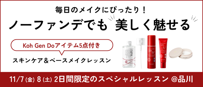 イベント名:毎日のメイクにぴったり!ノーファンデでも美しく魅せるKoh Gen Doアイテム5点付きスキンケア&ベースメイクレッスン