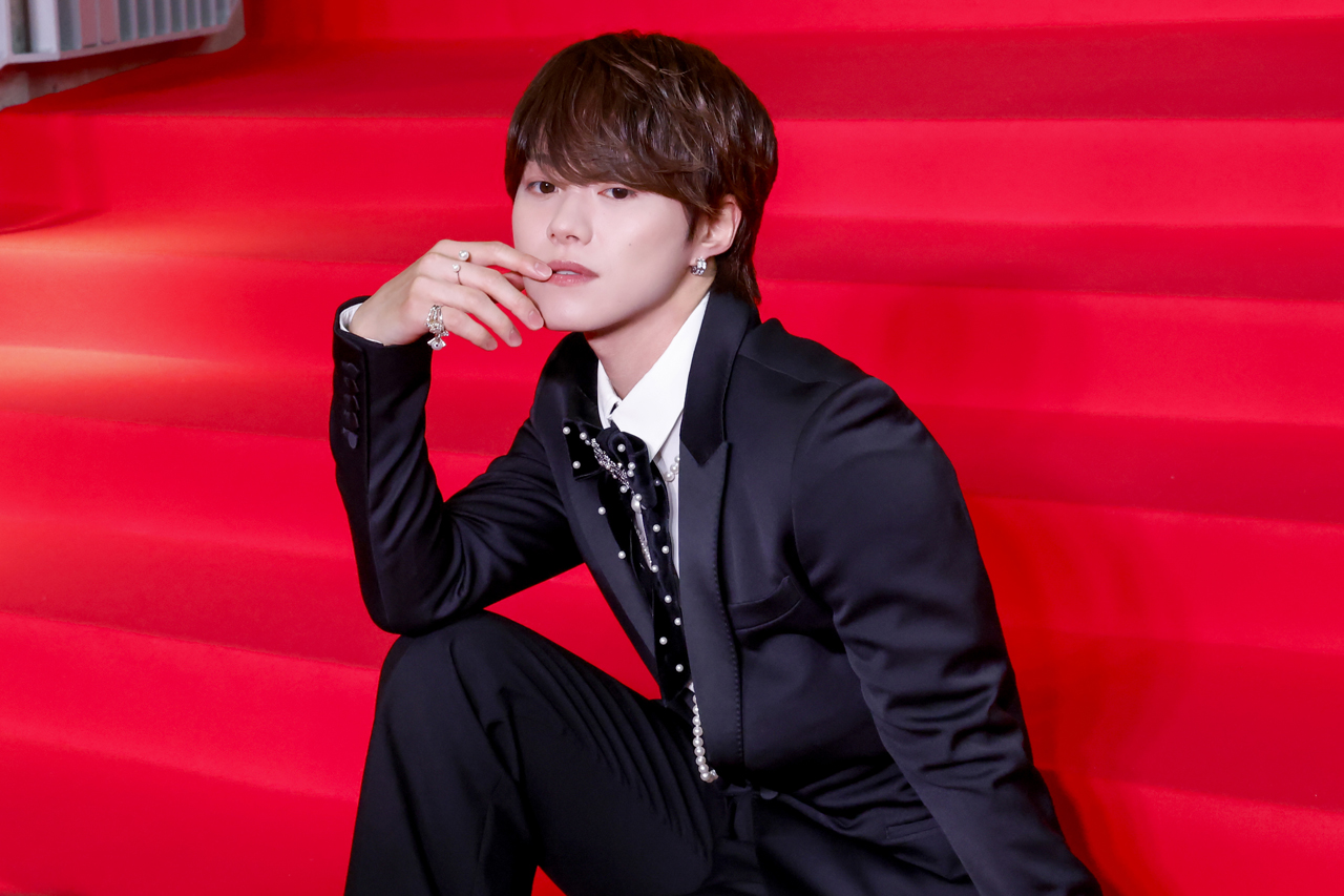 まずは階段に敷かれたレッドカーペットで公式フォトシューティングが開催。大人っぽい表情を見せたかと思えば、急にピースをしてニッコニコのアイドル全開の笑みを見せたりと、変幻自在に魅せた。