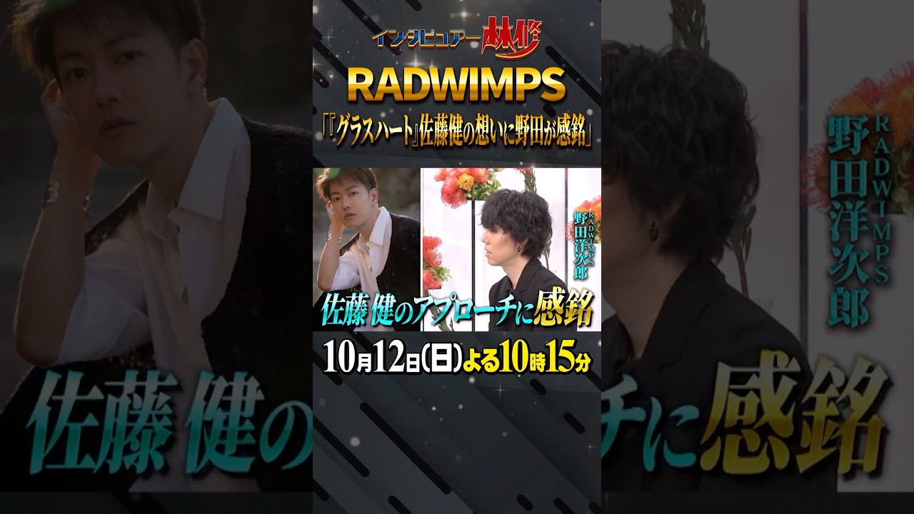 🚩いよいよ今夜放送/10月12日(日)よる10時15分〜 #日曜日の初耳学 #SixTONES #松村北斗 #RADWIMPS #佐藤健 #グラスハート #林修 #大政絢 #中島健人 #澤部佑