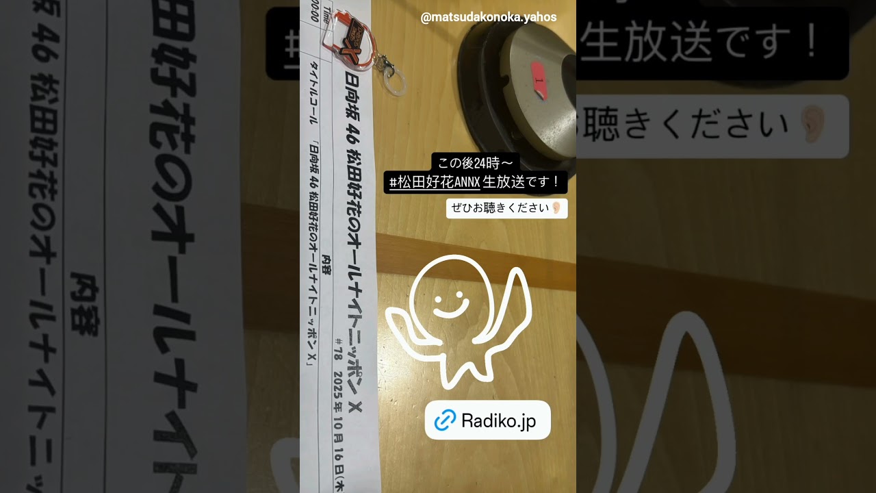 松田好花 本日10月16日24:00~ ニッポン放送「日向坂46・松田好花のオールナイトニッポンX(クロス)」に生出演します!