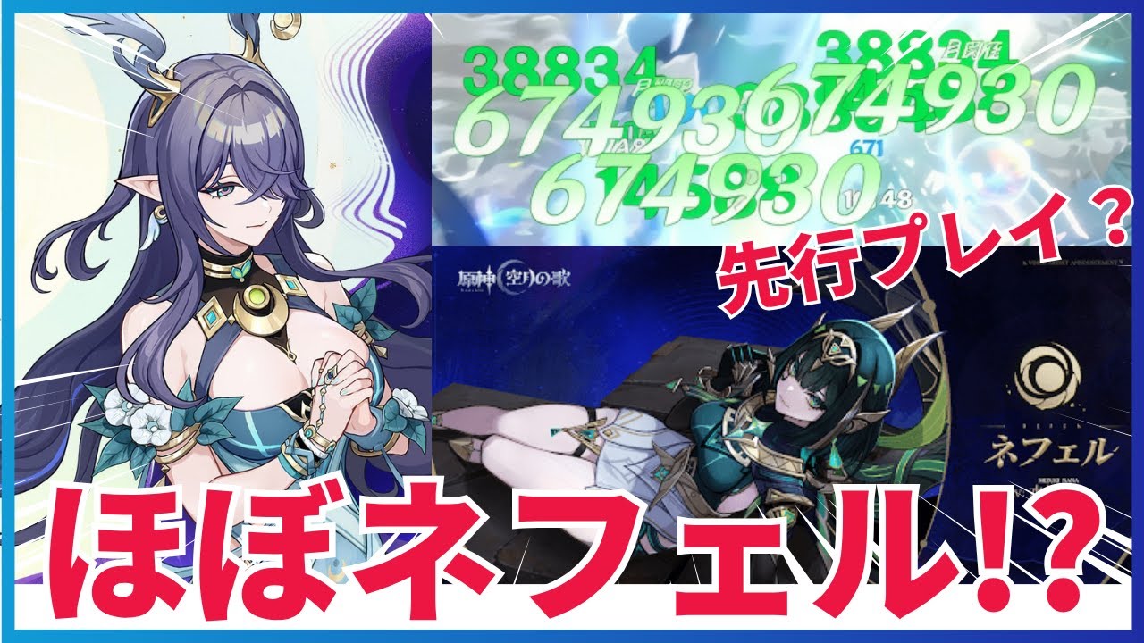 さあ、ラウマに変わって元素爆発でダメージバフしてからの元素スキル。 え、一撃46 万ドレイク瞬殺やばすぎる。え、一 撃46万 行くぞ。ボコボコダック。ラウマさんの鹿アタックを食らえ。 うわあ、65万。その後も17 万連発わろた。 地下を食らえ。 うわあ。65万。これって実質ネフェル さんなのでは? 秋も深まり急激に寒くなってきた今日この 頃皆様いかがお過ごしでしょうか?今回は ほぼネフェルナき開下アタッカー監凸で いろんな倒して実質ネフェルの先行プレイ をした気分になるための動画だよ。 先行プレイをするなんて夢のまた気分だけ でも先行プレイした感じになりたいのか 涙しいな。うるさいね。10月10 日に放送されたルナ2 の原身予告番組でネフェルの性能が一部公開され、ネフェルは月開であることが分かったぜ。 みんな大体予想してたよね。そしてネフェルの火力を少しでも早く体験したいとの思いからラウマさんを実質ネフェルとして操作するために今回はラウマさんの星座を監凸してきたよ。 お前ラウマさんの贅沢ボディに我慢できなくなっただけだろ。 ラウマさんの監凸効果は通常攻撃と元素 スキルの追撃で開化ダメージを与え、それ まではサポーターだったラウマさんを アタッカーにできるというもの。月開か ダメージの色は同じだからなんか気分だけ でもネフェルの先行プレイしてる気持ちに なれるんじゃないかと思って今回を倒して いくぜ。ダメージの色が同じだけけて根拠 しすぎるだろ。そもそもネフェルとラウマ じゃダメージの出し方が全然違うんだよ。 予告番組を見る限りネフェルは元素スキル で強化状態に入った後に定期的な銃撃で ダメージを出しながら最後に元素爆発で 大ダメージを出すタイプ。一方で監凸は 元素の初撃で大ダメージを出してその後は 通常攻撃と元素スキルで継続的にダメージ を出ていくタイプなんだ。その説明 は最初に大ダメージ度管してその後継続的 な攻撃。ネフェルは継続的な攻撃の最後に 大ダメージ度管ってことでしょ。 大ダメージを出すタイミングが違うだけでやってることはほぼ同じに聞こえるわ。 う、確かに大まかに言うとそうかもしれないな。ネフェルの詳細が分からない現状では全然反論できないぜ。 それじゃあ監凸さんがほぼネフェルだってことが分かったところで敵を倒しに行くわよ。テワット銃の敵を突き替ダメージで沈めてやるわ。 こいつ勢いだけはすごいな。 まず最初はフィールドボスのドレイクに挑んでいくぜ。 アタッカーラウマがどれくらいダメージを出せるか楽しみだな。 さあ、逆術ディオなアの順番で元素爆発と元素スキルを使って月開化と熟値を高めて さあ、ラウマに変わって元素爆発でダメージバフしてからの元素スキル。 え、一撃46万ドレイク瞬殺やばすぎる。 これは思った以上だな。 最初の元素スキル初撃で 46万ダメージ。その後の通常攻撃でも 17 万くらい出てとんでもないダメージになっちゃってるね。 次はフィールドボスのボコボコダック。アヌが作ったアヒルのような機械のボスだぜ。 とても可愛いわね。あ、野ちゃんのセンス良すぎるわ。 てえ、元素スキル初撃 65 万ダメージ。ラウマさんっておっとりした見た目なのに火力高すぎない? このおっとりした見た目でこのダメージはギャップありすぎるよな。 次はフィールドボスの気候デバイスに挑んでいくわよ。 気候デバイスは通常時の元素体制が 60% と非常に高いぜ。さすがのラウマ様でもあまりダメージが出せず苦戦するかもしれないな。 ラウマ様は元素スキルの添プレベル 13で敵の元素体制を34% も下げられる。さらに生物の森林 4セットで追加で30% 草体制ダウンできるから。 え、 ダメージ52万 やばすぎるだろ。元の元素体制が 60%あってもラウマさんに64% も下げられたら体勢なくなっちゃうじゃん。 デバイス君は体勢ダウンでまさに丸裸にされちゃったわけだ。 ラウマさんは自分の服が布の面積が少なくてほとんど裸だけど戦闘では相手を丸裸にしちゃうってことだね。 ということはお互いに丸裸になってしまうわけだね。 ふう。これはイメトレがはどるぜ。次は地方伝説にもチャレンジしてみるぜ。 地方伝説どうの上ね。遺跡ドレイクの強化個体よ。 通常個体よりHP も高いし火力も高くなってるから注意が必要だぜ。 ためモーション中に弱点を攻撃してダウンを狙うのが攻略法なんだよね。 うわあ。ラウマさん通常攻撃で20 万近くを連発。本当に火力高いね。 監凸ウマさん本当に他の本色のメインアタッカーキャラと比べても火力が遜色ないから本当にネフェルもこれくらいの火力になるのかもしれないね。 これはメインアタッカーに引けを取らないというかほとんどのメインアタッカーの火力を超えていると言っても過言ではないな。あまりにも火力が高すぎるぜ。 うわ、危なげなく倒しちゃった。 フィールドでは敵なしだから次は螺線にチャレンジしてみるぜ。 どれだけ無双できるか楽しみだわ。 さあ、やってきました