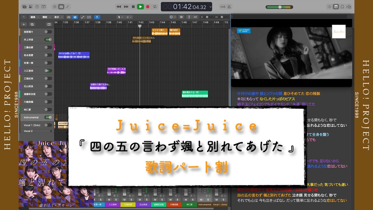 Juice=Juice 20枚目シングル収録曲「 四の五の言わず颯と別れてあげた 」の歌割をメンバーごとに歌詞付きでトラック分けをしました。