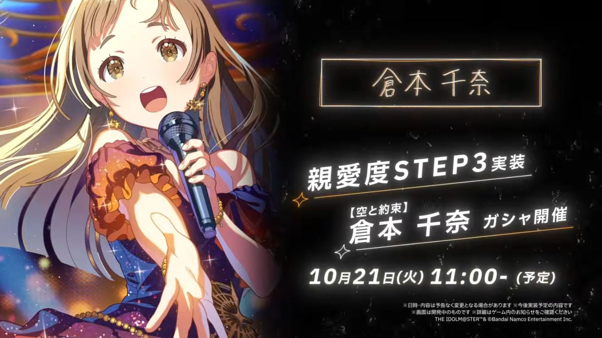 バンダイナムコエンターテインメントは10月20日、『学園アイドルマスター(学マス)』の最新情報を公開した。倉本千奈のSTEP3は、10月21日に実装予定。倉本千奈の親愛度21話以降が実装となる。
