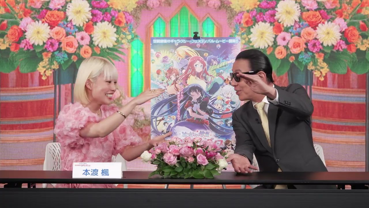 [音楽] [拍手] [音楽] [拍手] [笑い] [音楽] 本日のゲストです。本土楓出さんです。どうぞ。 はい、こんにちは。どうもどう 本藤と申します。お願いします。 こちらつまらないものではありません。 つまらなくない。 めちゃくちゃ面白い劇場版ゾンビランドサが夢銀河ラダイスのポスターを持ってきました。 よかったらおめください。 ありがとうございますね。じゃ、これ貼っといて。 あ、 はい。ありがとうございます。 お願いします。 あ、どうぞ。どうぞどうぞ。お座りください。 あ、失礼します。 え、よろしくお願いします。 お願いします。 これ髪色。 あ、ああ、嬉しい。そうなんですよ。もうこの紙にするのに 5回ほど 色を向きまして。 あ、じゃあだいぶだいぶもうい そうな わかんないね。でも あ、意外と保てます。 あですか。だいぶちぎれながらもやってますけど。 結構コロコロ変るよね。 気分やなんです。そうなんです。 嬉しい。たもさんご存知なんですか?私の神事情。 ここだけ。ここだけ色違ったこと。 ああ、それは今の嘘のその潜在写真です。 嘘の潜在写、こういう感じの、こういう感じのやつ。 あ、そう、そうです。そうです。こういう感じのやつ。 もうで、これが出てくるんで誰やねんみたいに良くなるんですけど、いい加減変えなきゃなと思ってます。 確か次、次はまたなんか計画あるんでしょうかよ。 ああ、そうですね。ちょっとオレンジにでもしようかなと思ってます。 はい。 また誰だってなっちゃうもんね。 そうですね。そしたらまた写真も変えるんで。 ああ、そうですか。 待ってます。いいね。 ありがとうございます。 え、で、今度映画に出演するみたいで。 あ、そうなんですよ。 これですか? あ、お、 劇場版 うん。 ゾンビランドサガ夢銀河ラダイス。これすごいね。うん。 インパクトのある言葉ばっか並んでるけど。ゾンビ、ゾンビ、ランド、サ、 夢銀河 パラダイス。 すごいね、これ。 なんかそうですね。もうあの、携まってから数年経つのでもうすっかり慣れてしまって。 そういえば変ですね。この名前。 すごい。すごいんね。 ゾンビランドサガ 夢銀河ラダイス。作品がパラダイス。 パラダイス。これすごいです。これどんな作品なんですか? そうですね。すごくざっくり言いますと、ま、その爆末の時代から現在に近いもう平成の子たちが、え、ゾンビとして蘇 させられた。 させられちゃった。 はい。蘇れってパーンみたいにされてずって蘇ってお前ら佐賀県で今からアイドルせイってプロデューサーに急に言われてドヤンす、ドヤン、 [音楽] ドヤンソド どうしようってなって。 ま、でもやるか。 彼女。 あ、そうなの? はい。これみんなやらされてる。 へえ。あ、やらされてる。 はい。もうやれいって。 やれ。ドヤンス。ドヤンス。 トヤンスはこのこの私この本桜という役を演スがどうしよう。どうしようってなってんですね。 ええ、もうもうそれ聞いただけでだいぶはちゃめちゃですね。 あ、そうですね。ま、でもちゃんとこうキャラクターの過去やっぱ爆末から平成なのでそのなんて言えばでしょうね。 こう人生をどう終えていったのかが めちゃくちゃドラマがありました。 あ、なるほど。なるほど。このみんなアイドルみんな世代が違う人たちな。 違うんですよ。 だったり、ま、その佐賀県で活動するんですが、ま、その生きていた頃、佐賀県で実際に交流のあった人と 会う時も あ、あるの? あるんですけど、でももう一応なくなってるということになってる子たちなので、 あ、 じゃあどうするのっていう? そうか。普通はそうだよね。 そうなんです。 そう、そうだよね。じゃ、普通じゃないってことがもうだいぶ分かりましたよ。 ああ、そうです。はちゃめちゃですね。 だいぶはちゃめちゃでございます。 はい。そうなんです。ま、でも笑えますし、音楽アイドルなので。 そうか。アイドルだからね。 そう。楽曲も素晴らしいものがあって泣けるんです。 泣ける。 はい。 これなんかそ、今、今の話だけ聞いてると泣けるがちょっとわかんない。 あ、本ん当ですか? ただでもそうか。みんなで一緒に頑張ってるから。 そうなんです。成長もしていきますし。 ええ。ええ。 うん。え。ま、ちゃめちゃでも感動もある。これ面白そうすね。 ありがとうございます。面白いですよ。 ちなみにこれテレビシリーズから劇場版になったって話ですけども、これテレビシリーズからなんか劇場で変わったんですか? ああ、結構そうですね。変わらないところももちろん大事にあるんですが、変わったで言うと例えばぶっ飛び具合がさらに上昇しました。 これ以上ぶっ飛んじゃん。 もっとぶっ飛んでます。 今までだいぶ飛んでたけど。 まあ、今までもそうですね。人前で首取れちゃって、あば マジックですみたいなことやってたんですけど。 ま、こだ。 ま、あの彼女たちゾンビですが劇場版では ゾンビ 宇宙人と戦います。 宇宙人が来ます。 彼女たち