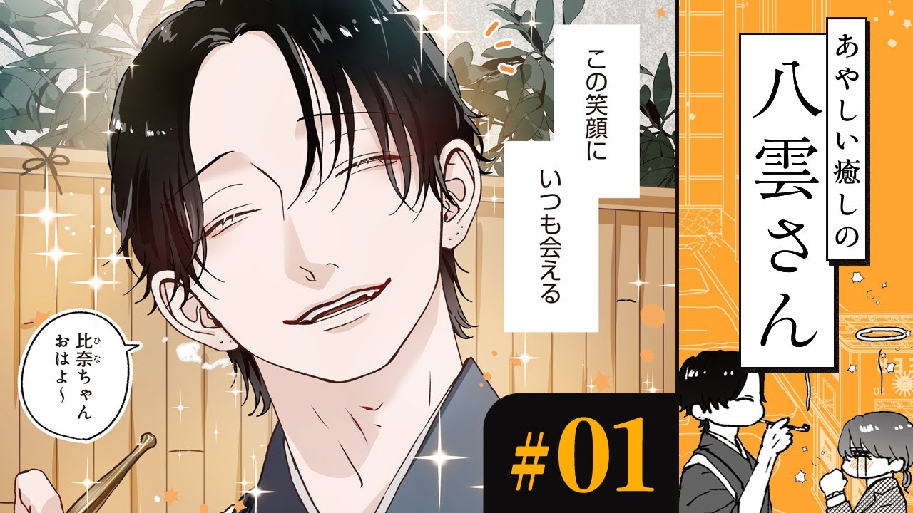 [音楽] 朝9時5分に家を出る。 [音楽] 公園を抜けて右に曲がり、 あの料理屋さんの前を通る。 いつもと変わらない最寄り駅までの道でもこの笑顔にいつも会える [音楽] ひなちゃんおはよう。 おはようございます。今日もかっこいい。 [音楽] [拍手] ちょっと怪しいけどこそ私の癒です。 [音楽] 怪しい癒しのヤモさん。通勤中にいつも会う料理屋のお兄さん。遊んでそうだしうさん臭いけど片思いすること。 あ、ひなちゃんおはよう。今日はまた一段と綺麗だね。 あ、もしかして恋人できたとか若くていいね。 [笑い] おはようございます。今日も好きです。あ、ずっと隠してたのについ思考が声に出てしまった。今日も好きです。今日も好きです。 ああ、これ着かされるやつだと思っていたら、 え、 あ、ちょ、あの、ん、ありがとう。一旦そう、あれだわ。落ち着いて話そう [音楽] か。すごくピュアだった。好き。 [音楽] おはようございます。 通勤中に会う料理屋のお兄さん。遊んでそうでうさん臭いけど片思い中です。 [音楽] おはよう。今日もお仕事頑張ってね。 [音楽] 笑顔癒しだ。今日 1日頑張れます。ありがとう。はい。う。 [音楽] お、ア、 こっち入る。 ありがとうございます。かじゃなくて折りたみあったっけ? あった。あ、 はい。使って。 あ、でもあの 大丈夫、大丈夫。 店のやつだし気にしないで。 お、折りたみ持ってます。 あ、そ、そう。いやあ、さすが準備いいね。は、何この可愛い生き物?あ、や、やっぱり違う。持ってないっぽいです。すみません。 [音楽] お借りしても、 え、 傘を借りてしまいました。ボイスコミックでは見られないエピソードもたっぷり収録。コミックス怪しい癒しの雲さんもよろしくね。 [音楽] [音楽]