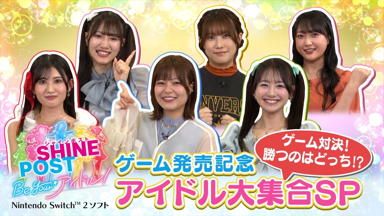 だ届け届け全てを超えてけめくる季節はで のトンネル走れ走れ たで胸の揃えてこの夢を駆け抜けるよ約束 坂の先 その ああ、あのライブからもう2 年ちょっとか。 え、ちょっと、ちょっと、え、 突然ちょっとはるか昔だな。 時がね、も早いんですけど、 私たちがね、今日なぜえ集まったのかということで 久しぶりで色々話もしたいんですけれども はい。今日の企画をね、早速発表させていただきたいと思います。 6月5 日発売の社員ポストのゲーム、社員ポスト Bアイドルをみんなでやってみよう。 イエ。 一旦あの改めて自己紹介をさせていただけたらなと思っております。ではまず私から どんな時も前向きな元キっこであり 輝く道シルべ社員ポストを目指して頑張るアイドルの生張役を演示させていただいておりますさです。よろしくお願いします。 [拍手] そしてはい、 アイドルですけど牛丼ご飯食べちゃいました。 てレお茶の上大成功ですかい。 [拍手] はい。たき役様子です。よろしくお願いします。 てる きかちゃんの絶妙なラインの上久々です。 確かに牛丼杯は確かにおめだな。 これツクツインテールで。 そうなんですよ。今日はちょっと平和してきました。 はい。ありがとうございます。 ありがとうございます。続いて 私のことを覚えてないなんて言わせないわよ。 聖なる舞を見せる断りの王者西武利役の夏吉です。よろしくお願いします。 様 待っております。 どんな前を見せてくれるのか今日は はい。舞います。ツイチ2で舞います。 いいですね。いいですね。ありがとうございます。 よろしくお願いいたします。 はい。 今日の晩御飯も激辛カレーライス。ングスは私様にお任せだ。役のでよろしくお願いします。 [笑い] やられた。待ってずるいよ。続いて。 あ、早い早い早い早かった。 私は誰も1 人ぼっちにしない。ちょっぴり日本語が糸おかしい。でもダンスは天才。伊藤み役の中川リ香です。 お願いします。いい 優しい グループ勝にて1番の魔剣キの持ち主 ハイレインバ林バス大学のゆです。よろしくお願いします。 [拍手] あと4人はどこなんでしょうか? あと4人あれあと4 人いるはずなんですけどどこなんでしょうか? どこ?どこ?あ、後ろいたいたいた。 [拍手] ちょっとあの見守られながら今日はやらせていただきます。 はい。ということでね、今日はなんとティングスってそしてなんとハイレさんから久保田さんも来ていただいてということでございます。 久々にね、みんな揃ってのすごい嬉しい機会なんですけれども、え、今日はね、たくさん色々プレイしていきたいと思います。ということで、ではね、早速やっていきたいんですけれども、まずはどんなゲームなのか萌えと久田さんの方からご説明できますでしょうか? はい。はい。6月5日に発売のNendo Sイッチ2社員ポストBアイドル。うん。 今回のゲームはプレイヤーがマネージャー県アイドル事務所の社長として はい。アイドルの夢を支えていくという経営シュミュレーションゲームとなっています。オーディションで出会った彼女たちを育成そして事務所を経営し、武道館でのライブ成功を目指します。 うん。はい。 はい。にもメインモードを通して入手した曲や衣装を育成したことのあるアイドルを組み合わせて自由にライブを行える。 そして各ヒロインたちの物語を読むことができるヒロインストーリーズモードの前 3 モードを収録。20 時間以上に及ぶシナリオがフルボイスで産れているのか、武道館を始め実在する会場が登場するなどを充実したプレイが楽しめちゃいます。 [拍手] はい。ありがとうございます。 いや、もうすでにね、なんかもうワクワクなになっているんですけれども、 みんな早くやりたいよね。 [拍手] やりたいやりたいやりたい。 ちょっと私たちだけでね、ちょっと進めていけるかってのちょっと不安なんで、今回は別になんと強力なスケットさんが来てくださって おります。 え、今回ですね、社員ポストB アイドルの企画、そしてプロデュースを担当してくださった石原明さんが来てくださっております。じゃ、みんなで呼びます。せーの。 石原さん。 [拍手] はい。こんにちは。こんにちは。 どういうの声が すごい。どこにいるんですか?石原さん。 どこにいるんですか? 僕あの皆さんのことちゃんと天んから見守っておりますので。の声 よろしくお願いします。 じゃあちょっと今日はあの上空からということで石原さんよろしくお願いいたします。 お願いします。 はい。石原さんには私たちのゲーム中に重要なポイントとかあともしかしたらヒントとかもね、え、解説などなどしていただければと思っておりますので、では皆さんよろしくお願いします。 [音楽] はい、よろしくお願いします。 実際のゲームでは一応武道館でのライブが最終目標っていうことになっているんですけれども、今回は特別ルールということで チーム対抗戦にしたいと 思います。1年を締めくる最後の12 月のライブを開催