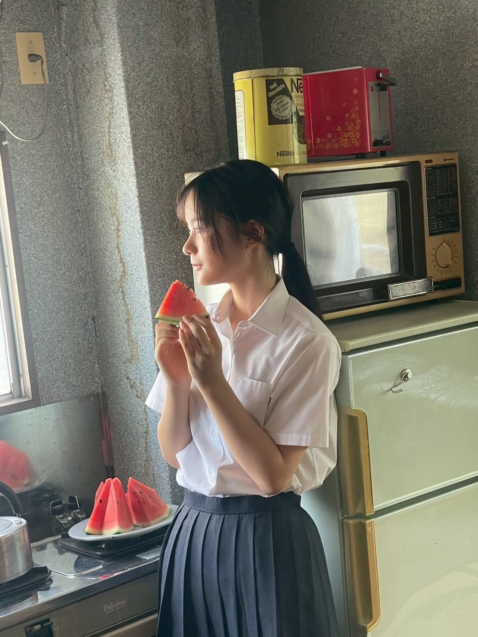 写真はB.L.T. SUMMER CANDY 2025さんのオフショットです!スイカって食べだしたら止まらなくなりませんか?わたしは、とまりません…