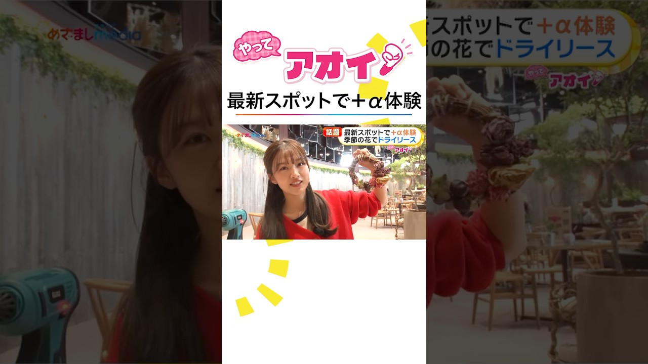 今回やっておい、初めて挑戦します。 原田アナが初めてのやって青色で向かったのは先週リニューアルオープンしたばかり群馬フラワーパークプラス花と遊べる体験施設として大幅にリニューアルされました。さんでドライリースを綺麗に作れるのか。原田穴初めてのやって青い。う わ、めちゃめちゃ緊張する。 リースに接着剤をつけたら赤や黄色などの空腹を乗せて固定させます。なんかお花を見せたいんですけど角度が難しいんです。 [音楽] 特に丸い形をした栗をつけるのには一苦労。 いや、これつくのかな?うわ、頑張れ。お、 [音楽] 作り続けることおよそ 20分。 完成しました。なんか全部埋めてないのもおしゃれだなと思ったので右に重きを置いてやってみました。 なんかね、色々と言いたかったんですけど、あの素晴らしいと思います。 嬉しい。素晴らしい。いただきました。 すごく綺麗に仕上がってると思います。 8 月に渋谷にオープンしたカラオケ店へ。こちらはカラオケプラスライブステージ体験ができる新スポット。 [音楽] 聞いている人は気に入った歌い手に対して 専用のアプリを使いチアーという有料の 応援ギフトを遅れます。スモークや照明 など様々な応援ギフトがあり盛り上げられ ます。 ということで原田穴ものが揺れたゴールドに [音楽] [拍手] 歌声に合わせてスモークや暑いなどの応援ともいだき大満足。 [音楽] 皆さんがすごいしっかり見てくださるのが嬉しくてあったかい空間だなっていうのを感じました。 そんな応援される気持ちが分かったところで、今度は全力で応援やって青い。今回は番組スタッフが歌うのを応援します。 [音楽] [音楽] [拍手] 番組スタックの綺れきれなも 全力で応援 かいいので可愛いで応援したいと思います。 ああ、出ました。かいい [拍手] 2 人のノリノりな歌と応援が周りのお客さんにも伝わり大フィーバー。 はい。