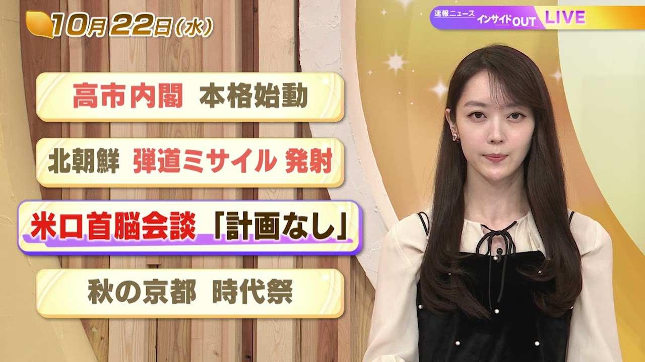 #今日のニュース #速報ニュース #上野愛奈 #BS11 #高市内閣 #本格始動 #閣議 #物価高対策 #副大臣 #政務官人事 #北朝鮮 #短距離弾道ミサイル #韓国軍 #合同参謀本部 #平壌 #聯合ニュース #李在明 #弾道ミサイル #高市総理大臣 #高市首相 #アメリカ #トランプ大統領 #ロシア #首脳会談 #米ロ首脳会談 #ルビオ国務長官 #ラブロフ外相 #ウクライナ #停戦条件 #京都三大祭り #時代祭 #平安線と #歴史絵巻 #京都市 #桓武天皇 #孝明天皇 #みこし #平安神宮 #京都御苑 #裏金問題 #裏金事件 #自民党派閥 #旧安倍派 #適材適所 #政治倫理審査会 #説明責任