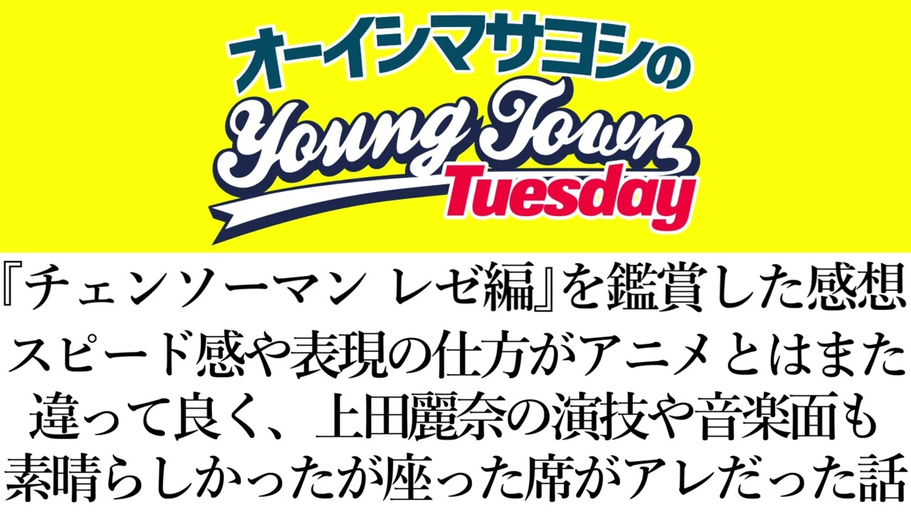 #チェンソーマン #レゼ編 #感想 #オーイシマサヨシ #オーイシヤンタン #ラジオ #オーイシ #ヤングタウン #MBS #アニソンシンガー #映画 #アニメ #レゼ #上田麗奈 #映画館 #鑑賞 #カップル #座席 #米津玄師 #宇多田ヒカル #JANEDOE
