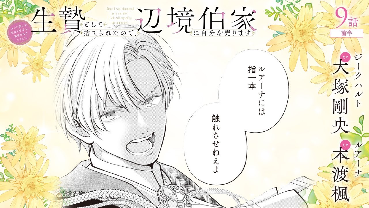 CV:大塚剛央 / 本渡楓 【漫画】『生贄として捨てられたので、辺境伯家に自分を売ります いつの間にか聖女と呼ばれ、溺愛されていました』2巻 #9話前半