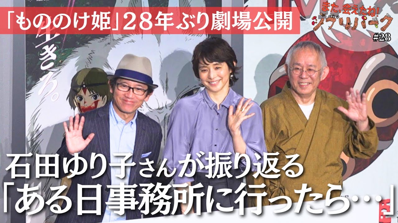 1997年7 月に初公開したの姫。当時観客同員 [音楽] 1420 万人という大ヒットを記録しました。 映画の毛姫が 4Kデジタルリマスターとして現在全国の IMA シアターで公開中。また会えたね。ジブりパーク。 [音楽] 今日は先週東京で行われた物の毛姫の死者会の様子をご覧ください。ある日事務所に行ったら鈴木さんがいらっしゃって え、嘘? いや、私の当時のマネージャーと話をしていたんです。一体何が起こるんだろうと。 そうなんだ。 思っていたらこんなお話だいてなぜ私なんだろうって。 でも本当に点々にも登るほど嬉しかったですけど。はい。そうですか。ま、簡単に言うと宮崎早のタイプだったんですよね。 もうそれがしたる理由。ほんでどうしたかって言うとね、物けの前の作品 平成戦ポンポコ。 ここでね、高沢のあ、ま、ヒロインをやってもらう。で、その時にね、宮崎早がね、あの、石田さんに挨拶する。 それを僕は見逃さなかったんですよ。 で、その時にね、鼻の下が長くなっててね、 ええ、 これだと思ったんです。 いや、私1番大変でした。 あ、そうですか。 もう完全に全員の中で 1 番下手くそでしたし、毎日泣きそうな気持ちで。いや、でも私にとってはその夢みたいなことはなかったので、私今でももう [笑い] 1回やりたい。あの、 でももうこの声出ないので そのぐらい思い出に残っています。 10年前にね、 彼女に はい。 会った時にね、いきなり言われたんですよ。 ええ。 声を全部吹き換えたい。もう1 回やりをしたい。彼女のね、僕セリフ忘れないんです。今ならやれるってあの時と違うってすごい真剣な目で迫られたんですよ。 [音楽] そのぐらい自分はあのこうもあの時こうだったなっていう反省点が多いんです。 [音楽] 全国のiシアターで期間限定で上映中です 。また会えたね。ジブリパーク。