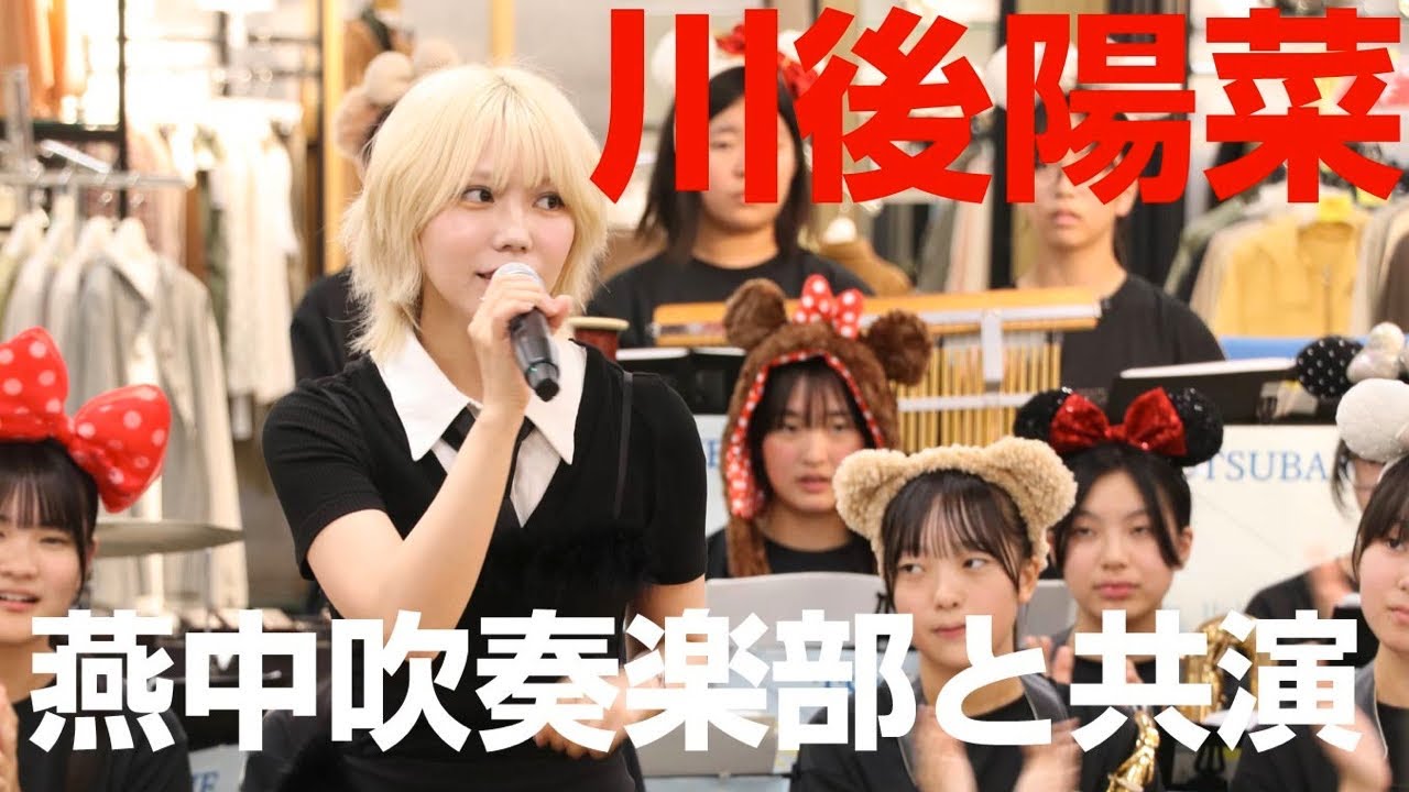 お願いします。ここで人足りな [音楽] 2日にはえ、つばメされ [音楽] ありがとうございました。じゃんけん [拍手] ありがとうございました。 水学部です。この度は海店記念会にお越しいただきありがとうございます。 [音楽] 皆さんこんにちは。 [音楽] こんにちは。 つばメ中学校水学部です。この度は回転記念祭にお越しいただきありがとうございます。今年もまた王イオで演奏できて部員 [音楽] 1度とても嬉しいです。 [音楽] [音楽] ສ [音楽] まして川ひです。よろしくお願いします。 お願いします。え、つ羽中学校の水奏学部の皆さんと、え、私の学いつかの卒業を、え、披露させていただきます。 え、この楽曲はですね、卒業をテーマにし た楽曲で、いつかは、え、こう学生の皆 さんに歌ってもらえるような曲になって 欲しいなと思って、え、リリースした思い があったので、こうやってコラボできるの がとっても嬉しいです。私自身、え、中学 生の時は、え、長崎県出身なので、え、中 学校2年生までは長崎で過ごしていたん ですけど、え、その時のことを、え、今日 、あの、この前リハーサルの時に、え、 つま中学校にお邪魔して、ああ、なんか中 学校時代をこうわーっていろんな思い出が 、え、思い浮かばれてとってもなんか 楽しい気持ちというか、あの時って キラキラしてたなっていう気持ちを、え、 思い出しました。 え、その時に私も部活やってたんですけど 、え、音師って呼べる人に出会って、あの 時はちょっと生意きなこととか言ったりし てたけど、でも本当あの時に教えてもらっ たこととか礼儀とかっていうのは今でも とっても大事にしていることなので、え、 そんな思いをこう今の中学生の子とかもね 、なんかむかつくこととかさ、怒っちゃう こととか色々あるとは思うけどでもなんか 本 掛けえのないものなので、え、今日の時間 とかもこう目に焼きつけながら、え、 楽しんでもらえたらいいなって思いました 。え、それでは、え、聞いていただきたい と思います。 いつかの卒業でると思ってたのにここでお別れ [拍手] [音楽] さ、 僕の言葉 じゃ きっと足りないかな。 くさき触っ て ああ [音楽] 2日には、え、つメ城ジャパンズで、え、 コラボ、え、させていただきますので、 是非その時もよろしくお願いします。皆 さん遊びに来てください。よろしくお願い します。 代わりてないと気づいた時にないよ。 どんな夢をこれからの中 願いる よ 。 [音楽] 君とあ君を離れてくよ。 [音楽] れありがとうございました。ありがとうございます。 [音楽] [拍手] [音楽] [拍手] え、チョキの方、チョキの方いますか?じゃんけんチョキの方。 え、先日メ中学校でリハーサルさせていただいて、え、 2 回目お会いしたんですけど、やっぱり水学部のみんながとってもキラキラしていて可愛くて、こう私のライブも 2 局拾させていただいたんですけど、その時も一緒に盛り上がってくださったのがとっても嬉しかったんです。え、津城パンフェスももうすぐ行いますので、それも楽しみにしていただければなと思います。ありがとうございました。 ありがとうございます。きます。 [音楽] Ja.