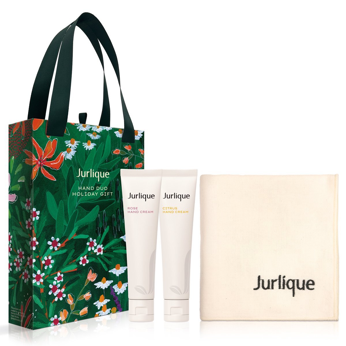 ジュリークの人気ハンドクリーム2種が楽しめるホリデー限定セット。華やかなで甘いローズと、フレッシュシトラスの対照的な2本が、気分やシーンに合わせて使い分けできるのが魅力です。なめらかでべたつかないのに、潤いのヴェールが続く質感は、乾燥が気になる季節にぴったり。オーガニックコットンを使用したガーゼハンカチも、手肌をやさしく包む上品な仕上がり。香りと触感の両方で“癒しのハンドケア”が楽しめる、ギフトにも喜ばれる限定キットです。