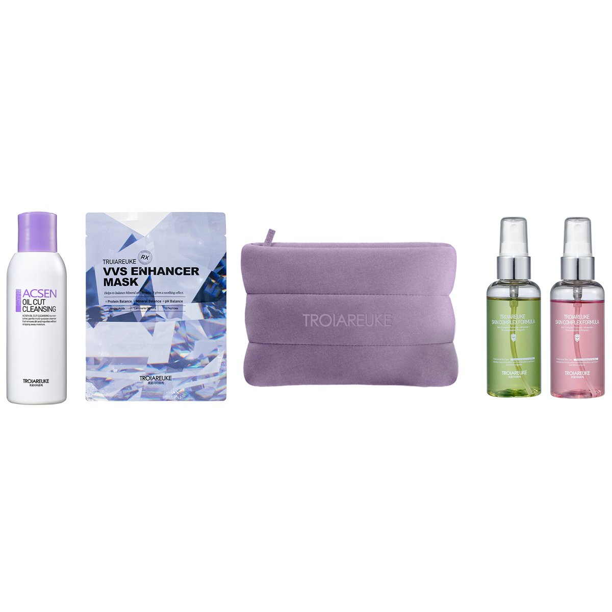 「旅行先に携帯できるミニサイズがほしい」という声に応えて誕生した、トロイアルケの限定コフレ。W洗顔不要の低刺激クレンジングは、パパイヤ果実エキス由来の酵素で古い角質を穏やかにケアし、後肌をなめらかに整えます。ビタミンやミネラルを配合したシートマスクで、透明感のある健やかな肌印象へ。使い勝手のよいラベンダーカラーのポーチ付きで、旅のお供にもぴったりなスキンケアセットです。