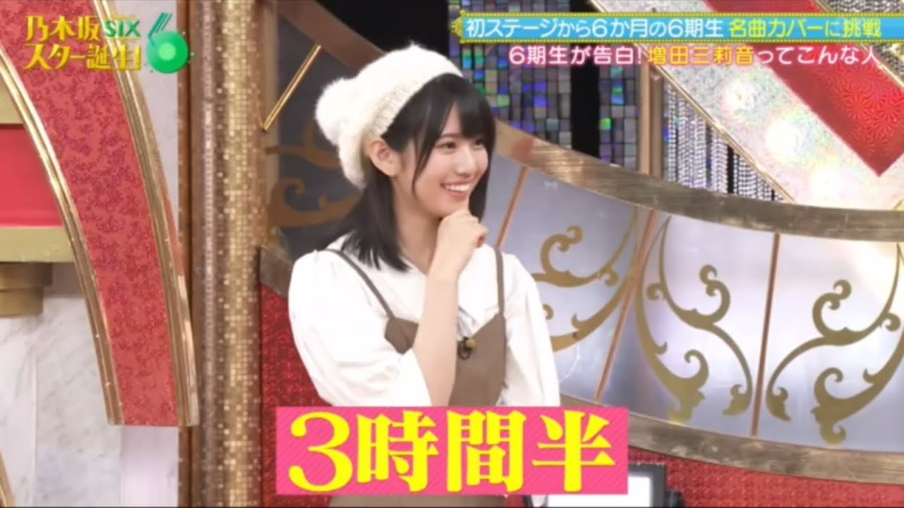 さあ、続いて歌ってくれるのはこちらのメンバーです。 松田です。今日 1人ですごい顔してるね。 あれ初めてだよね。そ、 そんな顔する? 不安。 不安。漏れすぎてますって。ちょっとテレビなんで一応 さあ、マス田といえばカがビニール袋だったり寝蔵がひどかったりと様々なエピソードがありますけれども、もっとマスダのことを知ってもらうとにこんなコーナーをやってみたいと思います。 増田ミの日常。 [拍手] マ田は自覚ないみたいなんですけど、 6 期生からマ田の日常を聞いてます。まずはこちら 新井熊か。 え、何だこれ? これ誰の垂れ込みですか?ゆちゃん。 これは私なんですけど、研修時代の時にミリネトホテルが一緒でその温泉に一緒に入ったんですけどうん。 同じ始まりで洗い始めて、 で、私はもう湯舟に15 分ぐらい使って、そろそろあったまったから出ようかなと思ったら始まった時と同じ格好をまだして洗ってて まだ同じ部分はなからゆうちゃんが洗い駒まかって言うた。 何をやってんの?その15分。 顔を流してたら 15分経ってます。 え、そんなわけない。 なんか本当は一緒に出たりしようかなって心配だったので思ってたんですけど、 また15分ぐらい待っても全然来なくて。 うん。 え、結局どんぐらいかかったの? 3 時間半。 長。 マジで 長い。