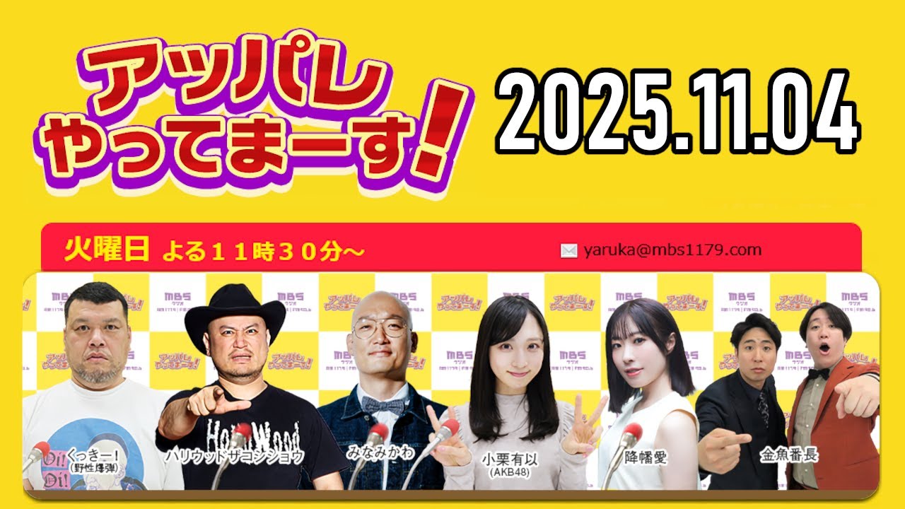 【2025.11.04】アッパレやってまーす!火曜日『令和ロマン 松井ケムリ復帰!』 【くっきー!、ハリウッドザコシショウ、みなみかわ、小栗有以 (AKB48)、降幡愛】