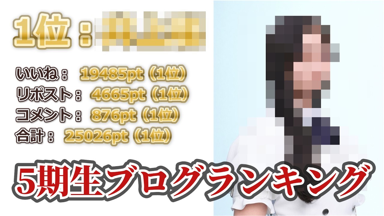 今回の動画は乃木坂46 5期生のブログランキングです。