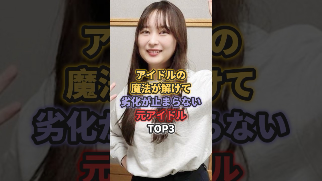 アイドルの魔法が溶けて劣化が止まらない 元アイドルトップ3。最後は全盛紀から 10km異上撃世権を驚かせたあの元 アイドル。第3位し田子。AKB 時代は神セブンとして絶大な人気を誇り、モデルとしてもスタイル抜群と評判だった彼女だが、卒業後に出演したバラエティでは顔がふっくらし、シャープだった輪郭がすっかり失われ、 SNSでは 誰だか分からなかった。そっくりさんかと思った。 驚きの声が愛ついだ。第 2 位鈴木ア根乃木坂時代は悪会完売の常連として人気を誇った彼女だが、卒業後のインスタ投稿では [音楽] 4の肉が下がり、体付きもふっくら。 おばさん貸した。一気に来たな。 とファンも衝撃を隠せなかった。第1 グループ卒業後もマルチに活躍していた 彼女だが、不倫騒動をきっかけに活動を 求し、半年間の引きこもり生活で全盛紀 より10km以上太り、二重顎や3段腹の 姿にファンから驚きの声が上がったのと アイドルは 矢口