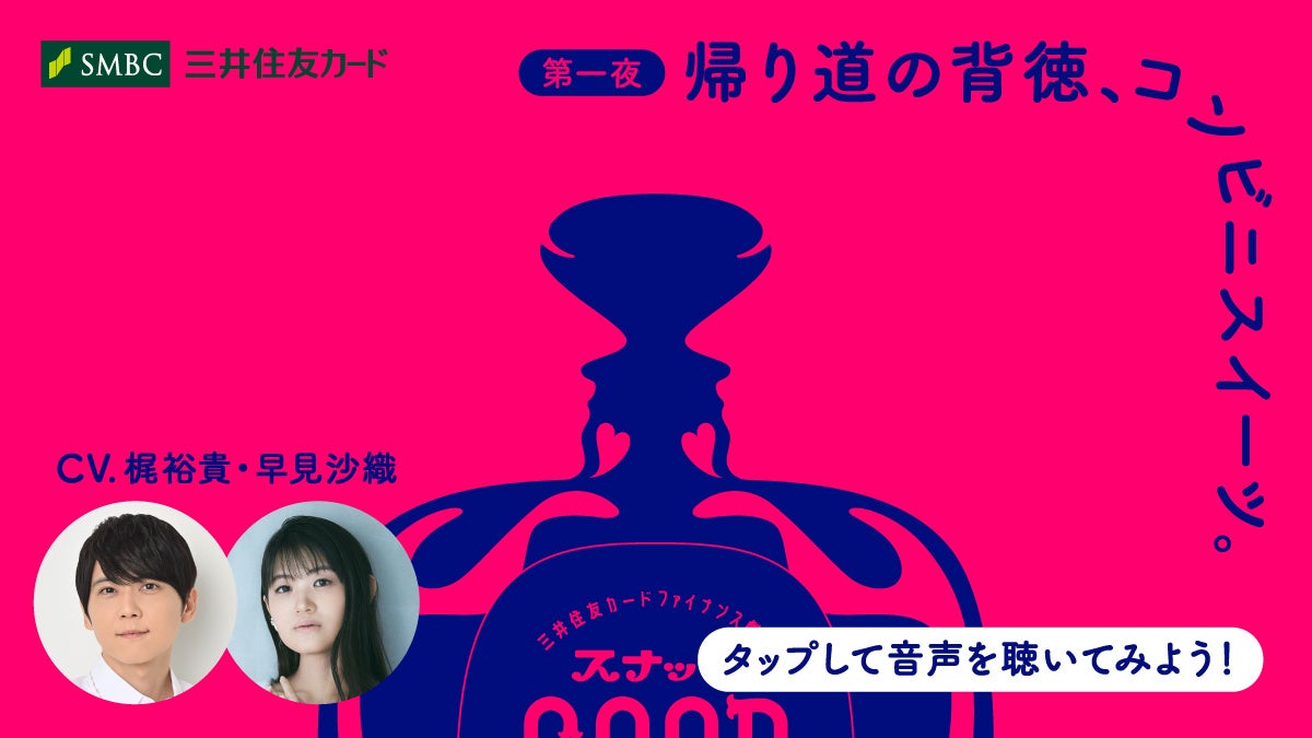 三井住友カード株式会社(本社:東京都江東区、代表取締役 社長執行役員 CEO:大西 幸彦)は、三井住友カード ファイナンスサービスのXアカウント(@smcc_finance)にて、ボイスドラマ「スナックGOOD BUY」を、11月10日(月)より配信開始します。