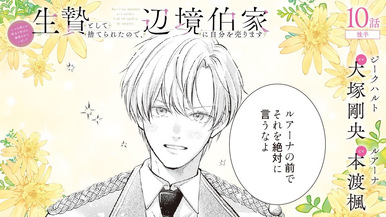 CV:大塚剛央 / 本渡楓 【漫画】『生贄として捨てられたので、辺境伯家に自分を売ります いつの間にか聖女と呼ばれ、溺愛されていました』2巻 #10話後半