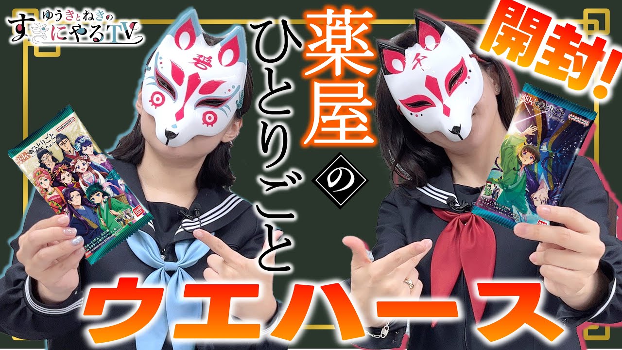 ゆきとネキの好き TV イエーイ。 第15回と いうことで、ま、普通にね、あの、この番組本当どこから見てたいてもなんとなく楽しいという感じに なってるんですけれど、ま、まずはね、告知してこうと思う。うん。 はい。 告知から見て欲しいからね。 はい。 すでに告知済みですが、東京コミ 2025にて、え、公開収録と 3委員会の自が決定したよ。 イエー。イ、あの、コミ公式さんが大人気 YouTube 番組って書いてはい。本当だよ。大 そうなのかな。 新身のくらいにしといて欲しかったな。 もしか知る人ぞ知るくらいにして欲しかったな。 そうですよね。 そう。これみんなで大人気にしてね。 そう。あの、人気がないわけではないんですけれども。 いや、そなんかでもさ、大人気 YouTube 運組って言われるとちょっとやっぱ Hikakin さんとかを想像しちゃうじゃん。 そう、そう、そう。 そんなことはねえのよ。 そう、そう、そう。 バきしてるかは分かりませんが、でも確実にね。 そう。 はい。 なんか皆さんのおかげでなんか再生数とかチャンネル登録者数とかめちゃくちゃ好調ではあるけどそうなんです。 いや、でもまだ大人気と名乗るには ただ本当大人気レベルのことをさせていただくと言いますか、まつはい。日時、え、こちら 2025年12月7 日、日曜日会場レポートが 13時30分から。こちら配信さに公が 14時45 分からそしてプレイヤージャングル内のプレイヤーステージで観覧無料ということで多分コミに来ればまずここはもうねはい無料ではいお楽しみいただける そうです。ま、サイン会はねくレイヤーズジャングル内のグリーディングブースで、え、 15時40分から参加費こちらはね、え、 5500円でございます。 なんとですね、こちらの会マーベルコミックで活躍するピーチも先生き下ろしの雪のイラストにサインをさせていただきます。 すごい。 正直サインよりこのイラストが貴重な気がする。 いや、マジでそれなんですよね。すごいんですよ。いや、だからこの日、この 12月7 日、日曜日はですね、会場レポートがあって、公開収録があって、さらにサイ会もやるということで、もうもリの森さんでございますので、是非ぜひ遊びに来ていただければと思います。 はい。なのでね、概要は是非ね、ちょっと公式 Xご確認ください。 はい。 といった流れで、 今日の企画は何ですか? 今日はですね、私が最近あの夢中になってるアニメがありまして、最近というかちょっと前、まあ、今もなんですけど はい。 あの、薬屋の独り言ってご存知ですか? ああ、聞いたことありますよ。 はいはいはいはい。 その反応がらしいよね。 ということで今回はこちら薬屋の独り上ハウスでございます。 イエーイ。はい。 え、これバンダからね、バンダさんから発売されているテレビアニメクリアの独り言カード付きウェハウスでして、カードが全部ね、 29種類 全メタリックプラカード すごいですよね。全部当たりで、 SRカードはキラキラ白カード。 あ、いいですね。 はい。そしてお菓子はバニラクリーム味となっている。 あ、いいですね。ウハス美味しいよね。 うん。なのでちょっと開けながら 開封ですね。 あ、こんなことあったなとかね。 で、こちらまあね、きっとおそらく ゆきさんがこう、あの、作品の中でお会いしてきたいな方々がいらっしゃるはずなので、 ちょっとじゃあ開けていきましょうか。 はい。きたい みんなに ね。いや、本当に私それこそ原作全然知らないままで毎回初めて話をしていくので。 嬉しい。それめっちゃワクワクしますよね。 なんかあの最後の玉ってあすごい誰ってなってる未だに。 う。もうそういうことですよ。 うん。そうね。すごい似てるよね。 うん。 ね。似てるよねって。 うん。いや、本当に。そしてこちら。 可いい。 可愛い。表紙感じ。 こっちですね。はい。キービジュアル ね。 みんなが生揃いでございます。 すごいね、これ。やっぱ集まって写真撮った感じがしているの。うん。 寄って寄ってみたいな。 この中に楽カンいるの何? いや、いいじゃん。いいじゃん。ラカン。ラカンさん。もう今となったらここに入れますよ。 じゃ、最初はね、この中にラカいるのマジで何? 確かにこのメンバーの中になんてだろうね。 そう。なんかちょっとあのなんか上級費の中にいるの面白いんだよね。 確かにガシまでは分かるけど。なんで来たっていうね。よし、じゃあ開けていきますか。 はい。 じゃあ行きます。開けていこう。 ええ、このハサミ。 うん。 あ、大丈夫だった。 大丈夫。 大丈夫だった。 薬屋の独り言ハースって。 あ、すごい。あ、 何?何? シ水だ。 あ、水やった。水 シだ。 シ会いたかったよ。 会いたかったよ。水、 シ元気かな?水どこ行ったの? ここには虫がたくさんいるから。虫 それ名言なの? こ、そこ。ま、虫好きだけどね。 そう。虫大好きですからね。 最後のね、セミがね、良かったよねっていう。 そう、そうですよ。セミ え、私なんだろう。ああ。 ローラ引た