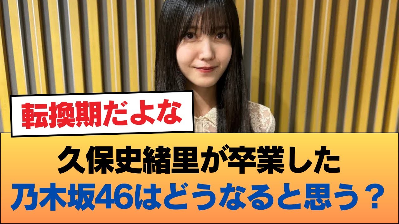 [音楽] 久し織が卒業した乃木坂46はどうなると 思う? 過で存在してる共通式としての乃木坂らし さが対現できなくなるこれをケーキに新た な乃木坂のカラーや魅力を発信する方向に 貸しを切るか伝統や継承などという言葉で 実情をオブラートに包み現状維持に血なに なるか大きな分岐点にはなりそうは乃木坂 の一期から続く古気を切れがしい遺産の 電動士 って感じが最も強いメンバーだからな。それを継ぐようなメンバーが今後出てこなければグループは変出していくだろう。 久保 本当に乃木らしさ、お原の中で最も大現した存在仕事の質とか姿勢とかが一期生の延長の存在と思ってる本人もそのように頑張ってきたのが分かるし 一期聖の秋本とか桜井とか高山とかが久保ちゃんは乃木坂の良い部分を凝縮したような子と発言してたし 変換機だよな。 ガールズトーク見ててもやっぱ有能でいなくなるのは本当に残念だけど、やっぱその点もありと何でもできる井上ナが光景的な感じになるかな。 久保井上になりつつあるのがおもろい求められてるものが万能外交面形って強化版久もって感じだけど久保井の上って奇質とか似てるんだよな。 久保がいると基本盛り上がるよね。 1 番は乃木坂の中では後輩にもよしよしだけでなく狐に突っ込めるところではそのタイプは神奈川や井上になるのかな。井上が ANN 引きつぶのは最もベストだと思う久保も井上も頑張ってほしいね。井上が久保くらい外でやれるかどうか。乃木坂 [音楽] 46 本体についてはさほど影響ないと思う外仕事多かったのでそれが悪いとかは言っていないので 5 期がいる間は大丈夫。 5期がちらほら卒業する時期に主力となる 7 期の先行にミスった時に心配したらいい。 何の問題もない。久保が閉めていたポジションは有能揃いの動きが埋めて何事もなかったかのように成坂は進んでいく。 そんなことより5期も400 部で免除するなら大打撃6 期が埋めできる気配は今のところ全くないから書き策卒業も見据えると今のままなら落は遠くなさそう。 くぼ抜けた穴よりも来年のご用百部免除の方が心配されてるっていうね。世代交代順調だったのに強すぎて後輩が育たん。 きは人気メンバーが年長に偏ってるから井上以外は先が短いんだよな。られても困るけど先行より人材が集まらない不安があるわ。 久保しおりがいなくなったら乃木坂 46が落して桜坂46や日向坂46 と力関係が逆転する。 久保は女優としては素晴らしいですが、 乃木坂46メンバーとしてはいなくてなっ ても大して今日内でしょうご規制が卒業し 始めたら厳しくなりそうで心配です。