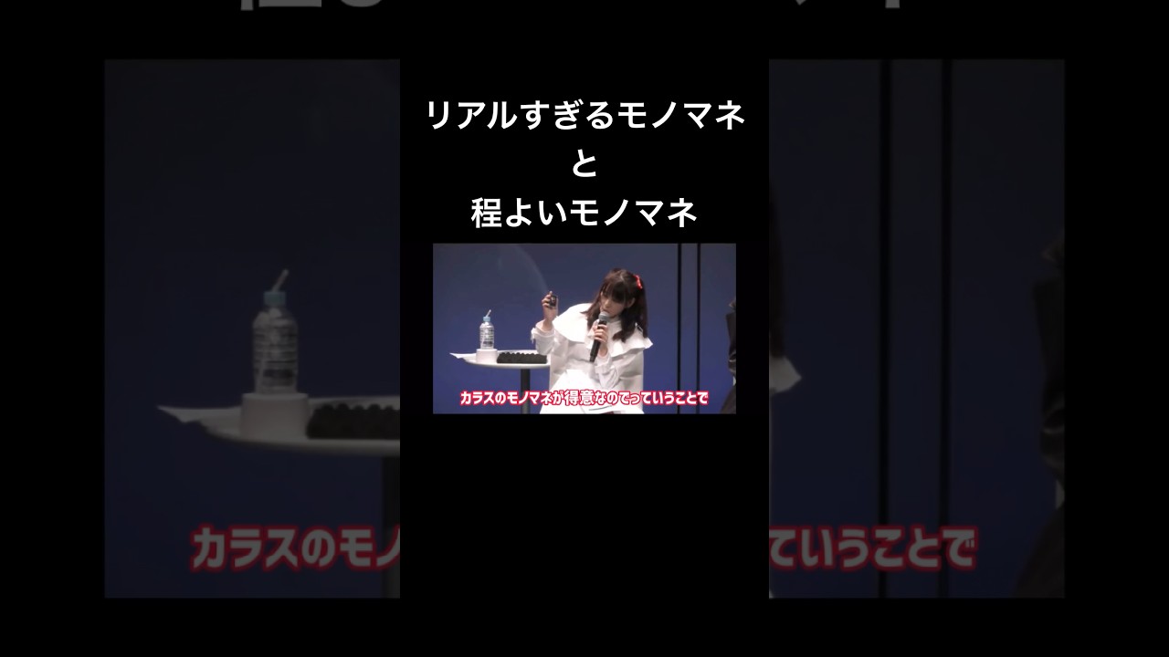 カラスと犬が これあの犬はあのみゆちゃんが勝ってる琥珀君ですね。 じゃあ前田さんカラスですかね。 あ、そうです。カラスのモノマネが得意なのでってことでそうなんだ。あ、知らなかったっけ? 知らあ、マジか? いや、何?なんだ?そのお前なんだその雑談?お、どうぞみたい。どうぞじゃねえよ。あ、じゃやりますよ。行きますよ。どうぞ。 ああ。ああ。 お、 そうですか。 すごい思ったよりレベル高くて何も言えねえ。そうなんです。 あのね、これちっさい頃からやってるんですけど、あまりにもガチすぎて周りの反応が困るっていう特技を持ってます。そう、 夕方聞けそう。 もかちゃんもノマネ得意だもんね え。 あら。あ、どぜひ どうもどのもノや。 え、でもキャラメ言っていいんだっけ? あ、言わないで。 いや、キャラメ大体言ってんのよ。 あ、じゃあ小泉萌イだぞって言ってください。 おはい。俺ら小泉も萌だぞ。 え、うん。 その反応でいいんだよ。その反応でいいだ。カラスもその反応ちょうどいいものマネなのよ。なんかだってあ、カラスぐらいの本物だった。リアルなんです。 ああね。鳥の鳴き声お待ちしてます ねえ。アミこんな事務所です。すいません。ありがとうございます。 Yeah.