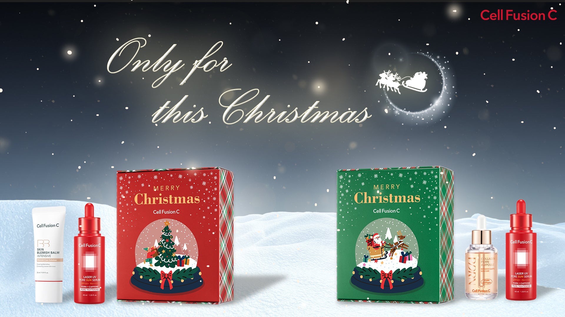今年最後のQoo10メガ割にて、Cell Fusion Cより、冬の肌を守りながら美しく魅せる「X’mas BOX」 2種類を展開。大人気商品を組み合わせた特別セットで、乾燥や紫外線から肌を守りつつ、透明感とハリを叶える内容になっています。