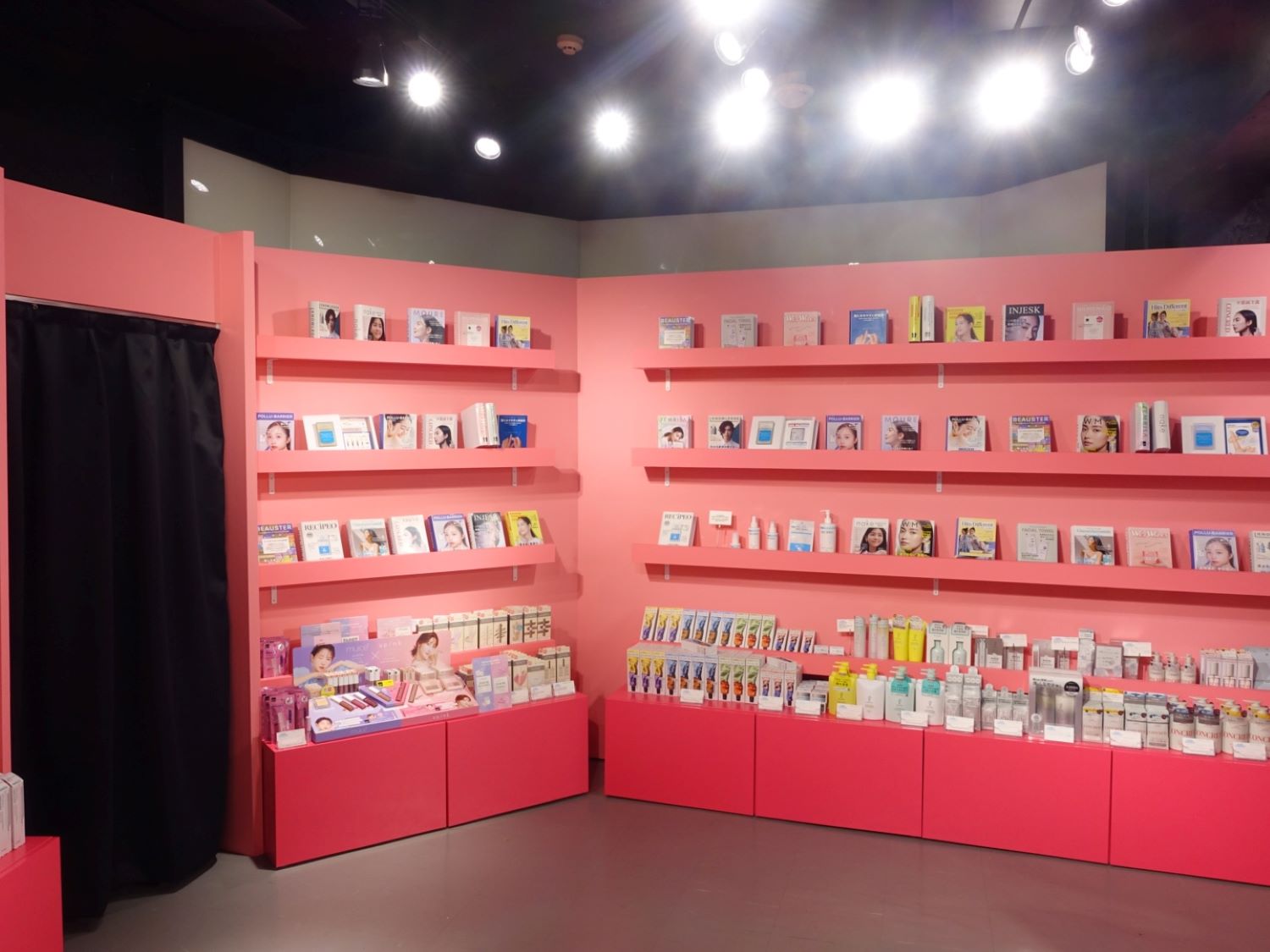 美容情報を楽しく学べるのが楽しくて、ついついいろんな本を開いてしまいました。ちなみに、本棚下部にずらりと並んだアイテムは購入可能。毎日使うアイテムへの理解が深まると、お手入れにもさらに気合いが入りそうですよね!
