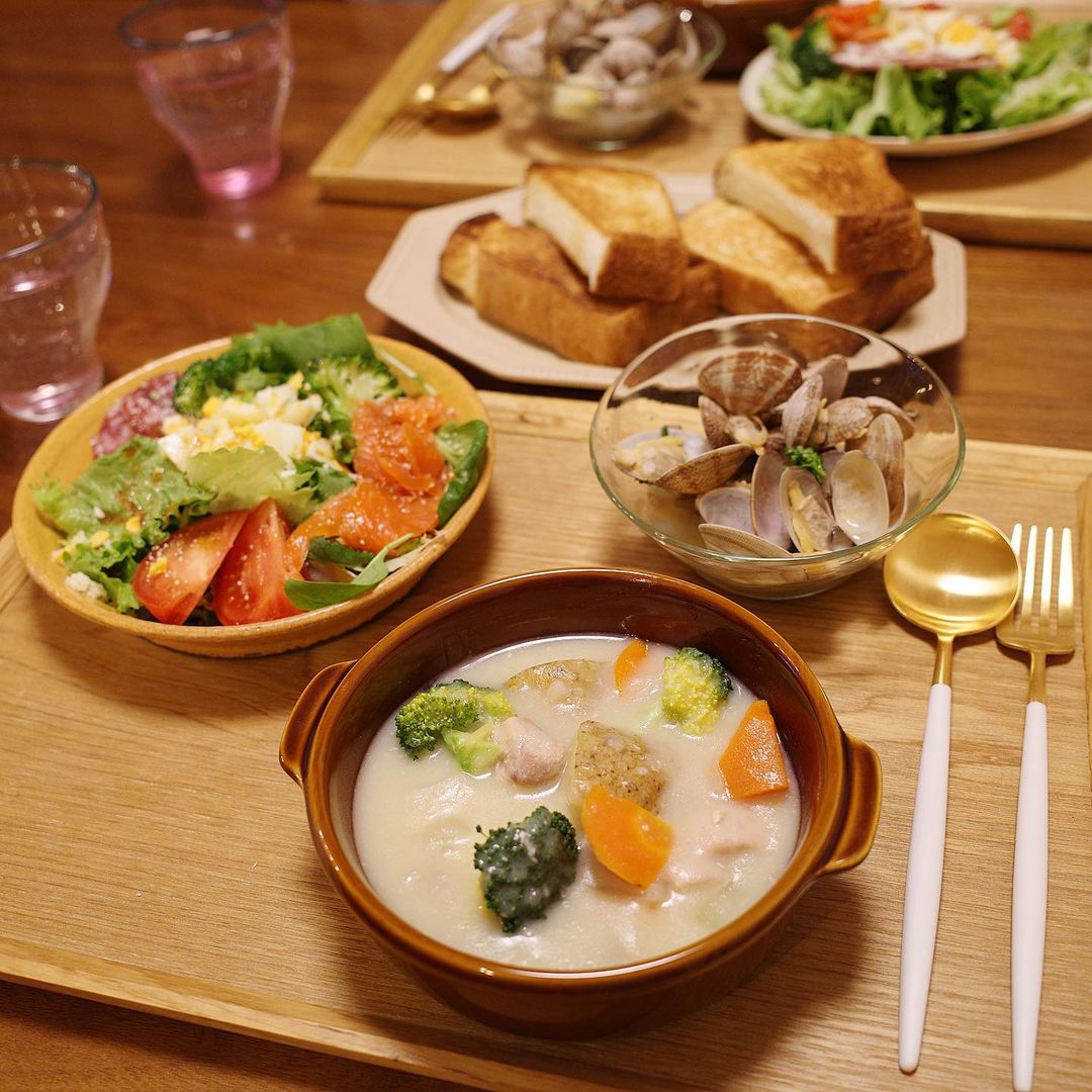 今日はクリームシチュー🌙 ・ 寒くなるこれからの時期は煮込み料理が増えそうだね👩🏻🍳🤍 ・ ✔︎クリームシチュー ✔︎サラダ ✔︎アサリの酒蒸し ✔︎パン ・ #ゆりあごはん #今日の晩御飯 #今日のごはん #クリームシチュー #あさり #腸活 #yuria_sato#佐藤優里亜Sato YuriaYuria Satoあさりクリームシチューゆりあごはん今日のごはん今日の晩御飯 腸活