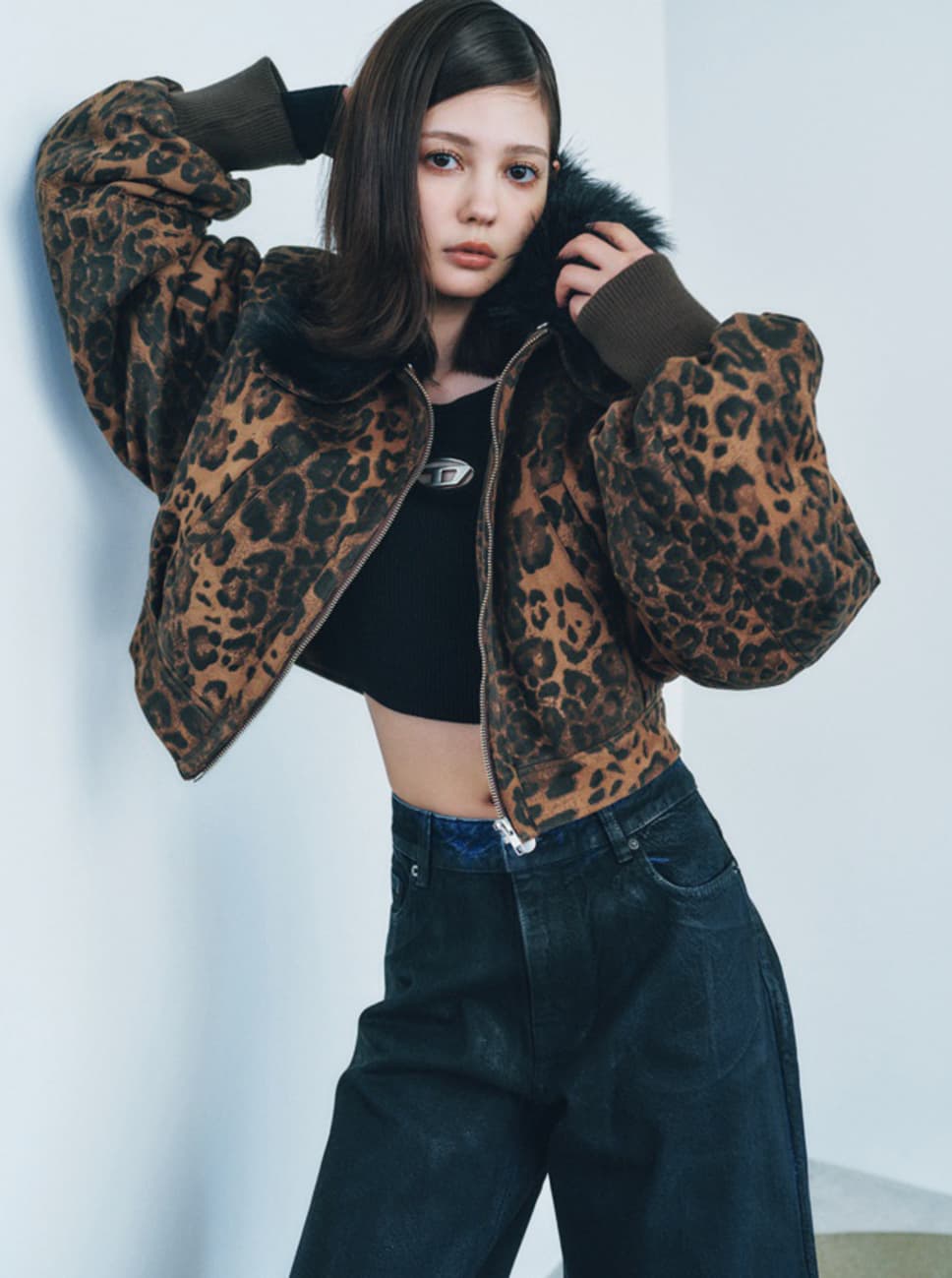 スウェードブルゾン¥16600/EVRISルミネエスト新宿店 中に着ているトップス¥52800/DIESEL JAPAN(DIESEL) デニム¥9999/H&Mカスタマーサービス(H&M Studio Holiday ●商品情報はViVi2025年12月号のものです。