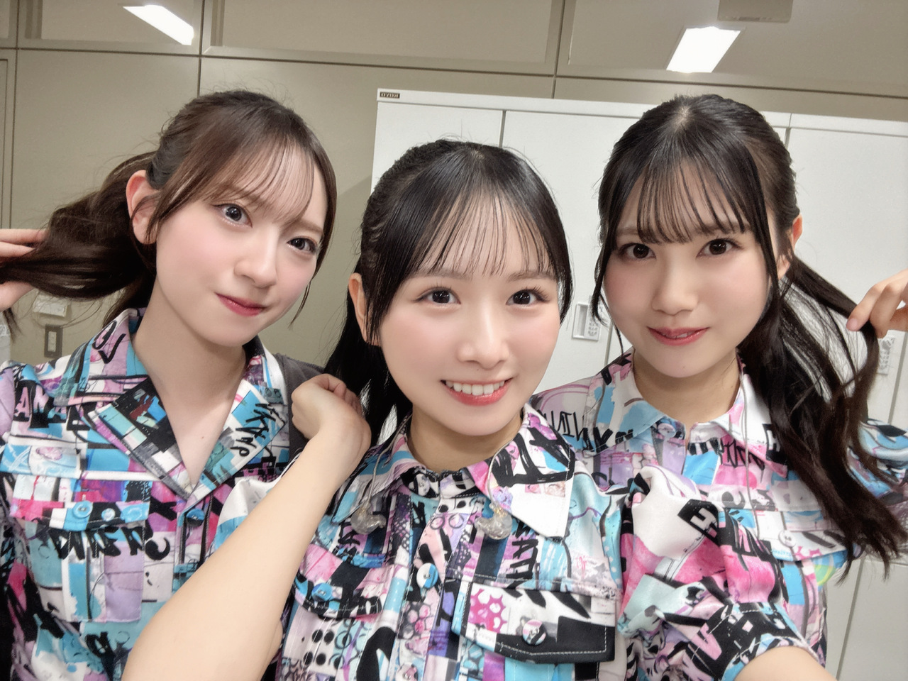 この日ポニテがお揃いだったにこちゃんとポニテ持ちで写真を撮っていたら