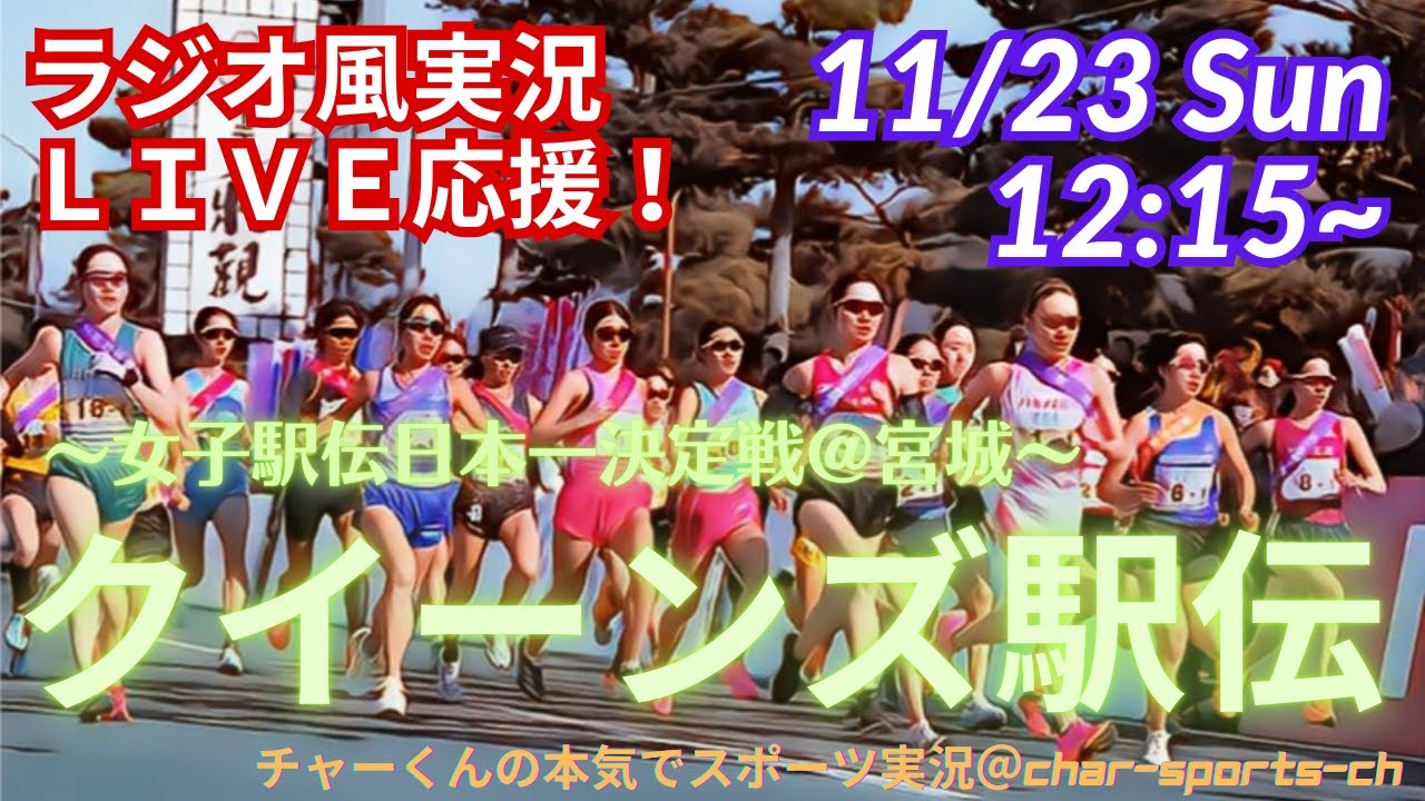 【クイーンズ駅伝・リアルラジオ風実況】女子駅伝日本一決定戦・クイーンズ駅伝2025をラジオ風に実況ライブ配信!ファンの皆さんと一緒に応援配信したいと思います!今後の配信予定はグーグルカレンダーで確認できます。ご自身のGoogleカレンダーと同期してください。→https://bit.ly/char-kun